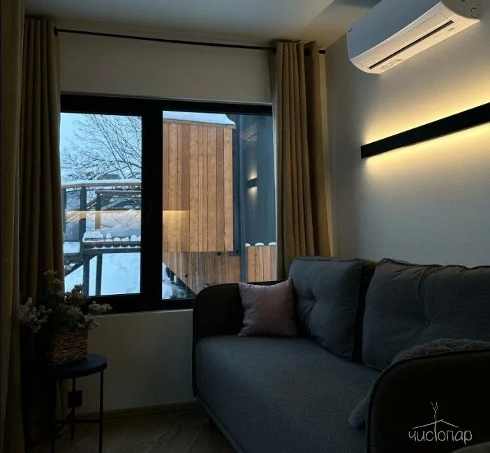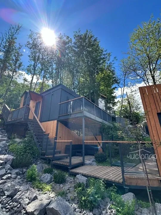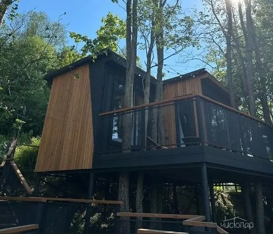 Однокомнатный коттедж в стиле эко - минимализм. Этот коттедж предлагает искусное сочетание минимализма и функциональности. Оборудован личной меблированной террасой. Идеально подходит для уютного романтического отдыха вдвоем или для индивидуального пребывания в обрамлении природы.