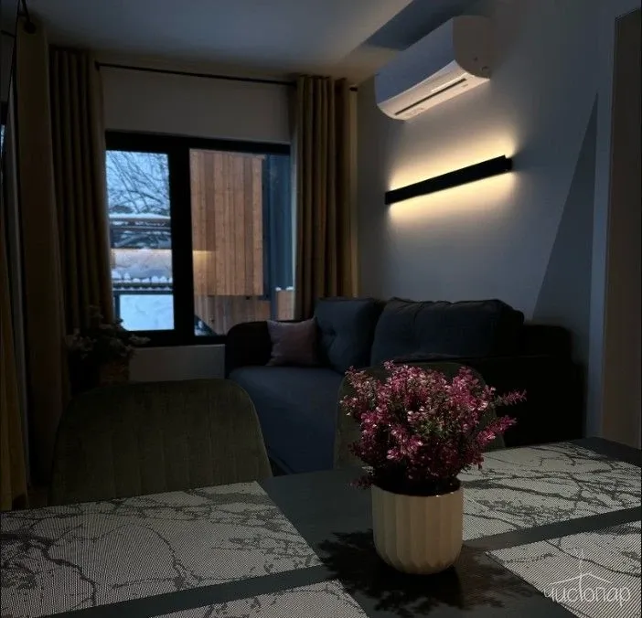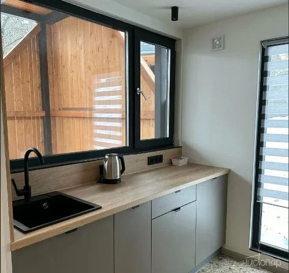 Просторный однокомнатный коттедж в стиле эко – минимализм. Интерьер продуман так, чтобы выделять зону отдыха и кухонный уголок, создавая ощущение простора и уюта. Расположенный на вершине холма, он открывает панорамные виды на окружающую красоту природы. Этот коттедж — идеальный выбор для любителей уединения, не желающих жертвовать комфортом и функциональностью.