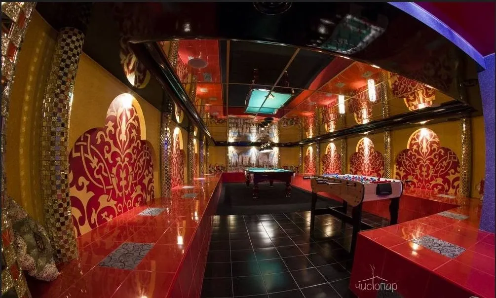 - Большой банный комплекс «5 звёзд»: финская сауна / большой бассейн / игровая комната с бильярдным столом + настольный хоккей / большой обеденный стол и музыкальный центр