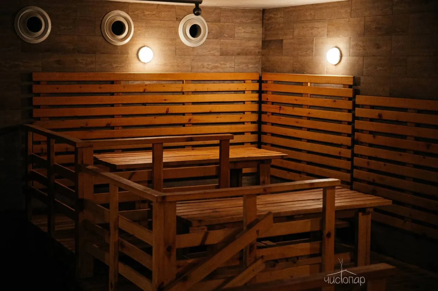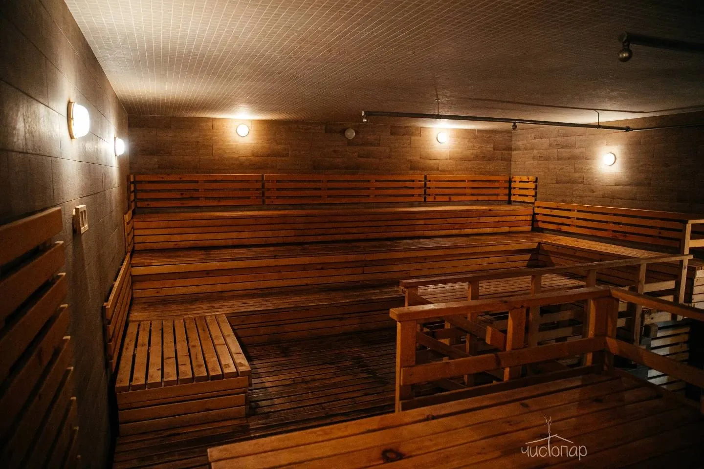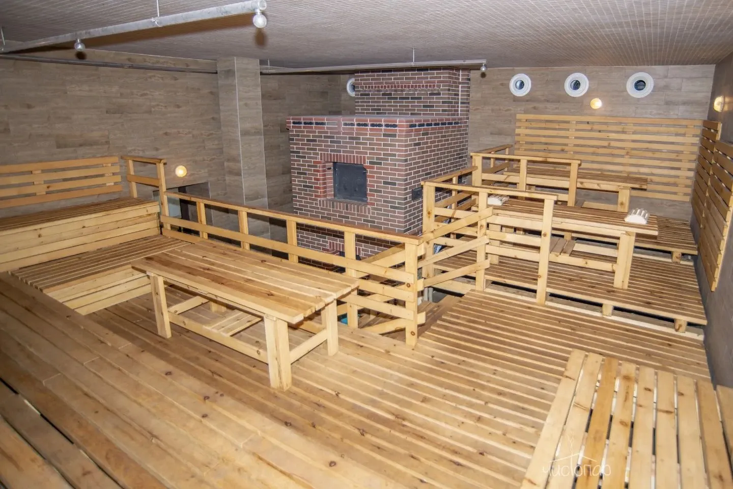 - Вместительная парная с печью 35 тонн (до 50 чел)