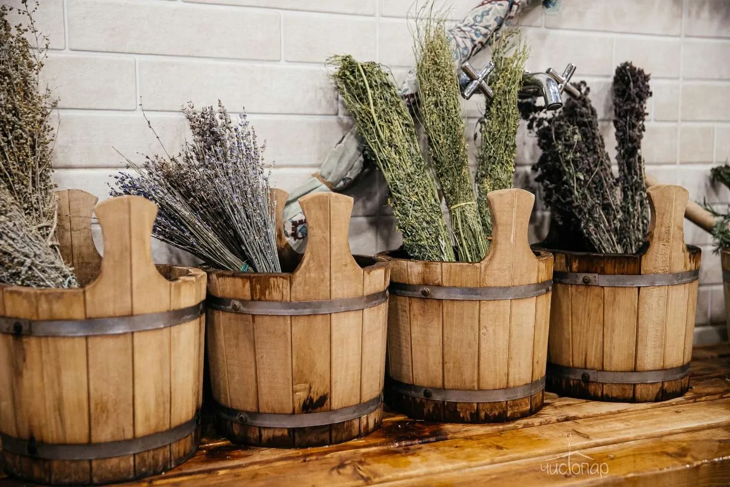 - Богатый выбор веников и банных аксессуаров