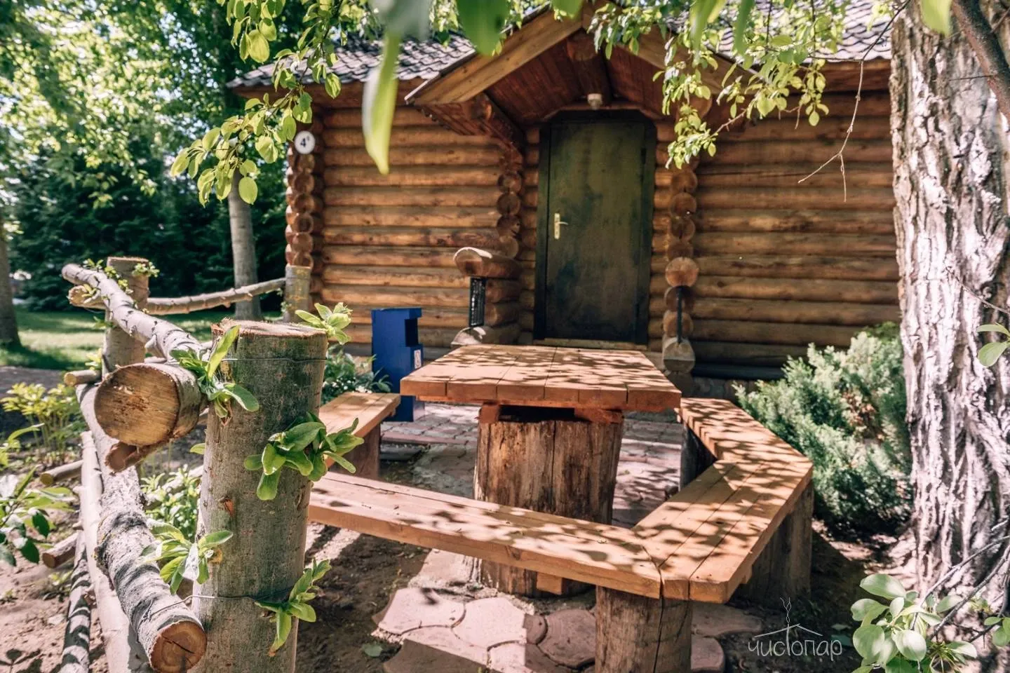 В летнее время гости могут пользоваться деревянными беседками и столиками расположенными рядом со входом в номер.