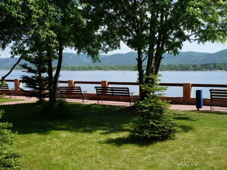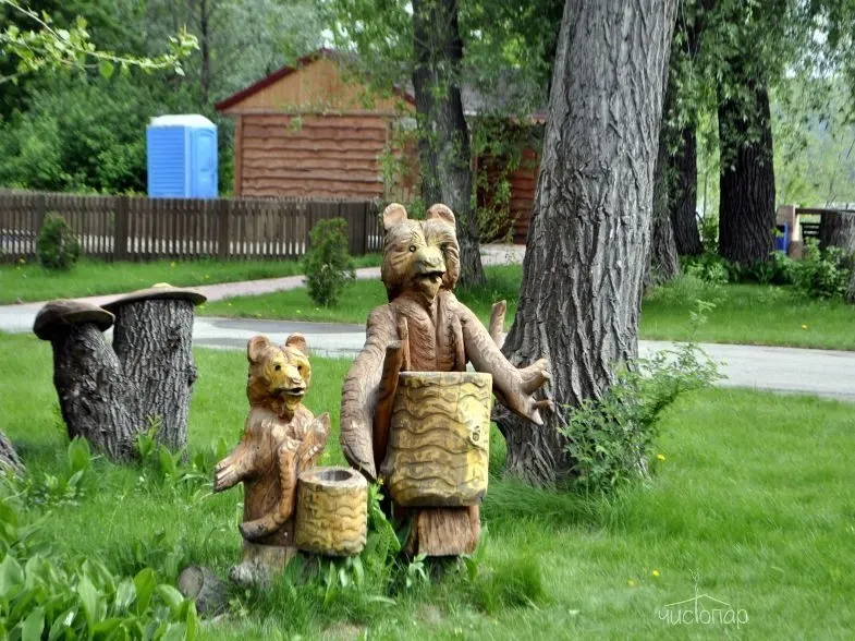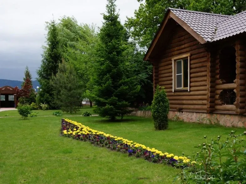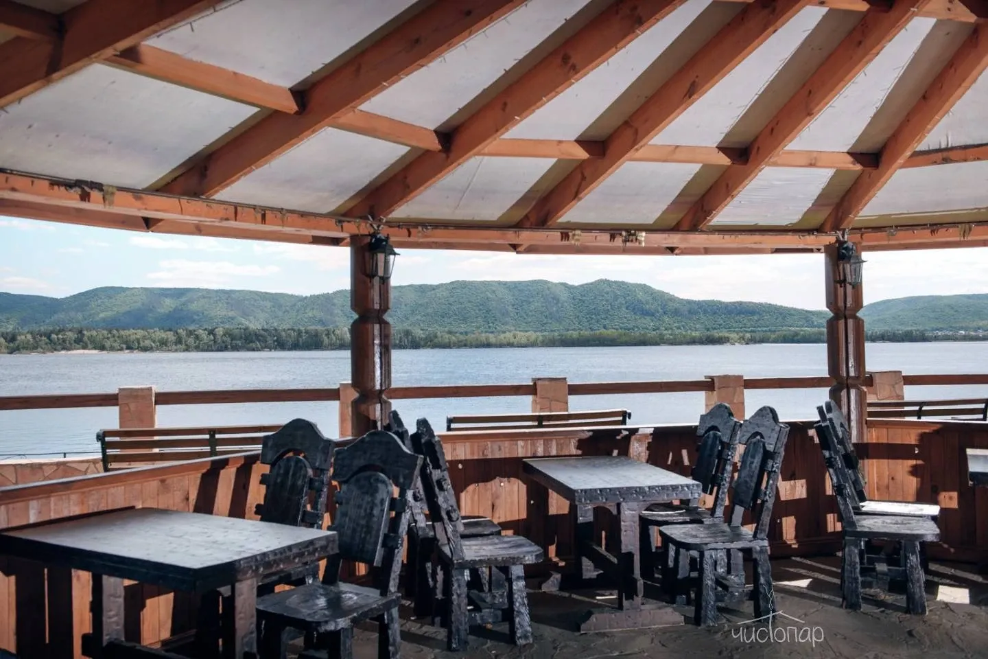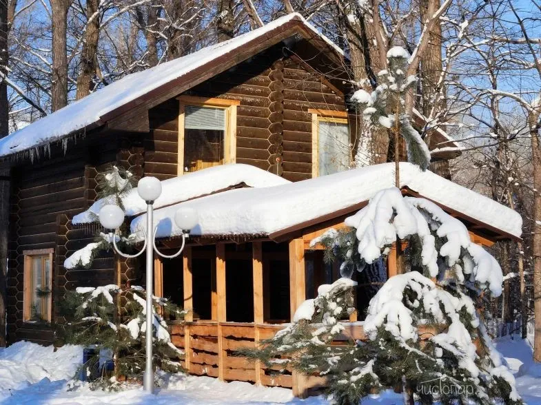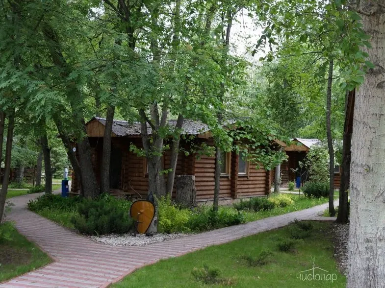 Загородный комплекс "Энергетик" с бревенчатыми домиками, ёлками, беседками расположился на берегу Волги.