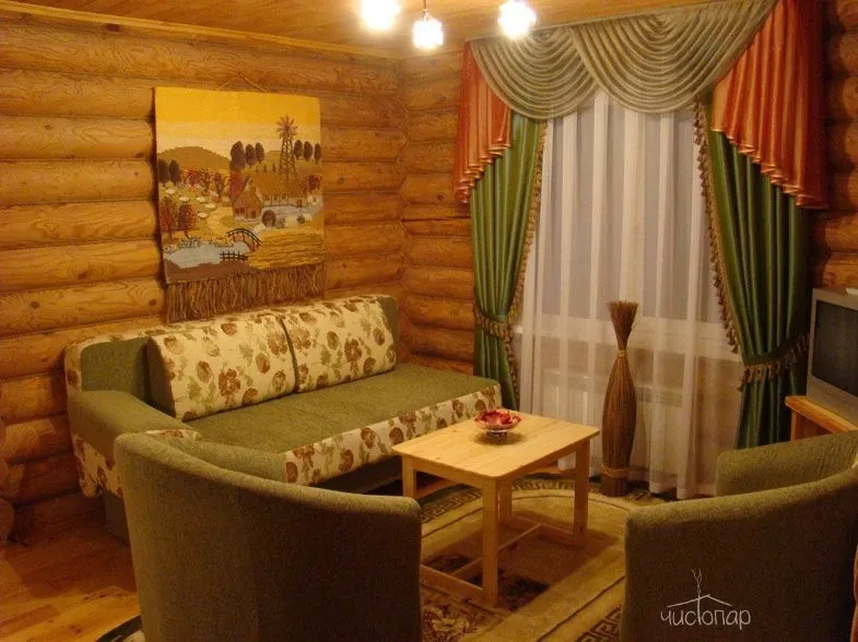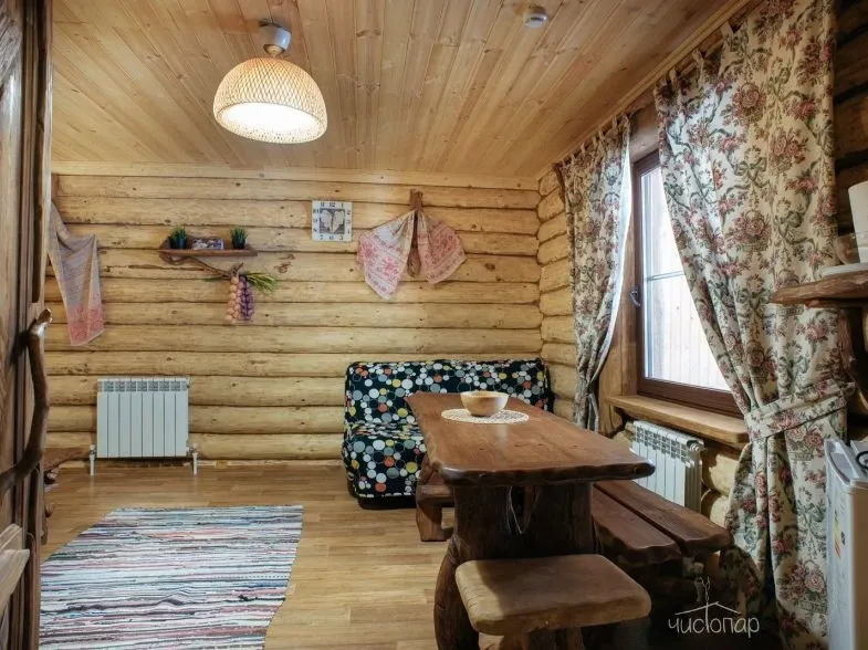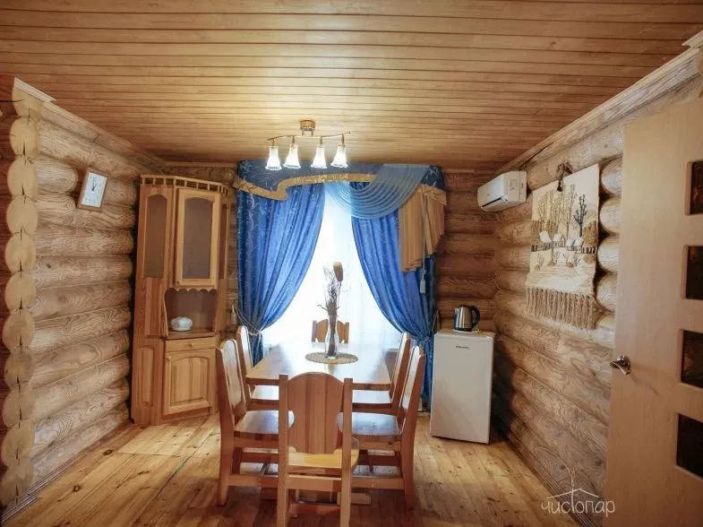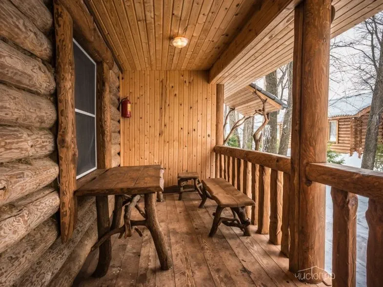 В уютных бревенчатых домах - все для комфортного загородного отдыха: душ, туалет, спальни и гостиные.