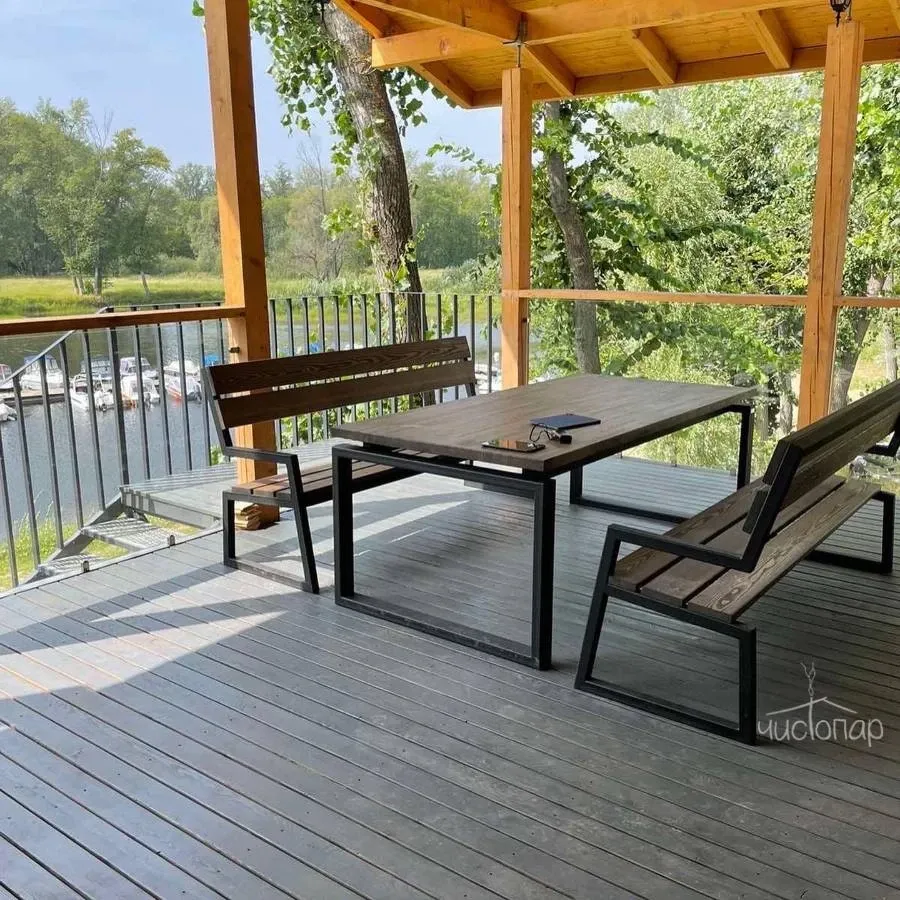 На территории базы находится две бани, ресторан, банкетный зал «Кают-компания», летняя веранда, шатры для свадьбы, летние беседки, спортивные площадки для мини-футбола и пляжного волейбола, бассейн.