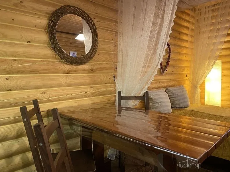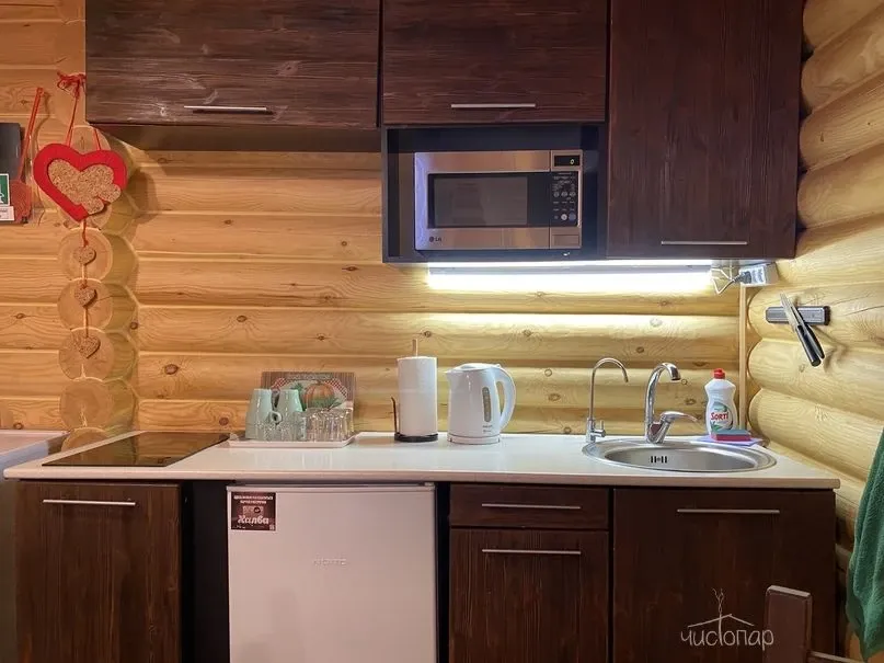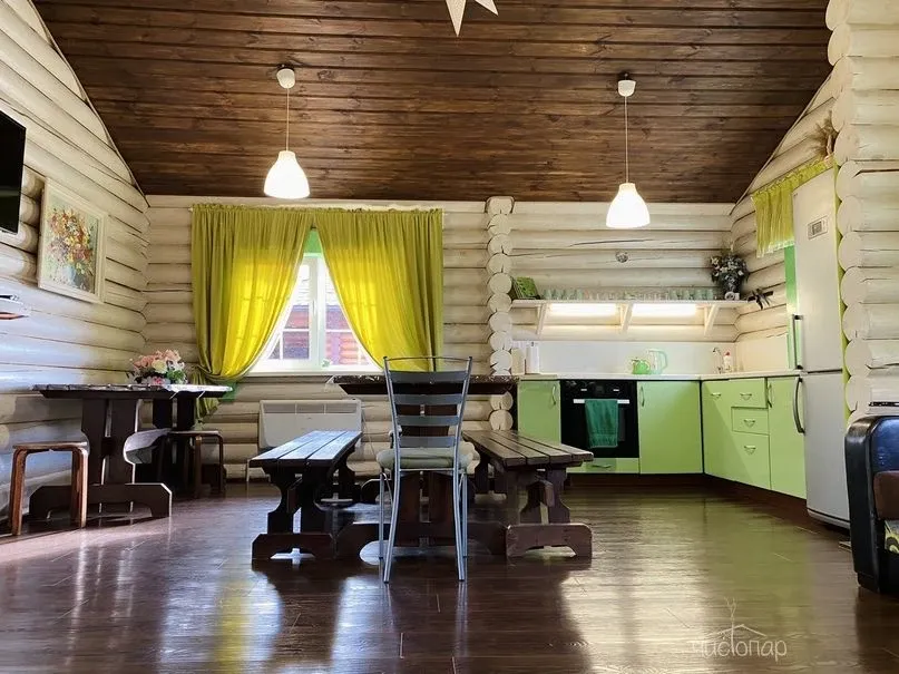 Срубовые дома, с высоким уровнем комфорта, кухней и всеми удобствами. В домах функционируют сауны. Так же на территории имеется открытый, подогреваемый бассейн. Мангальные зоны, террасы, wi-fi.