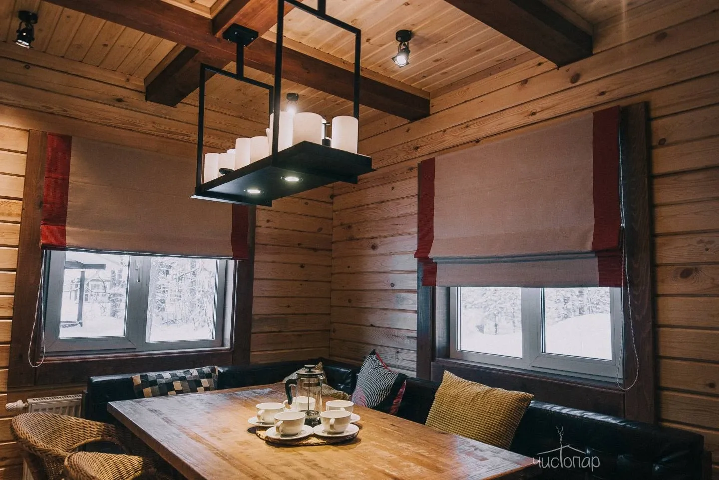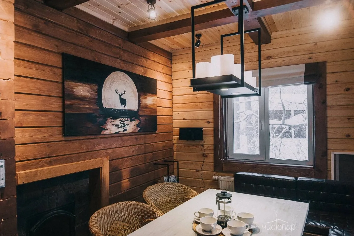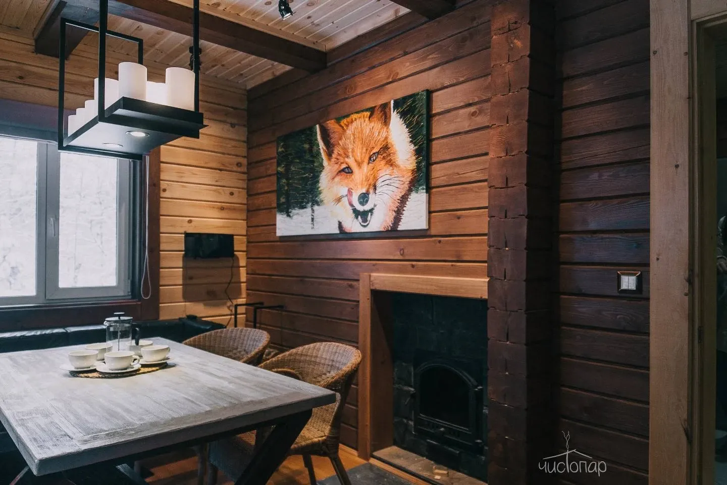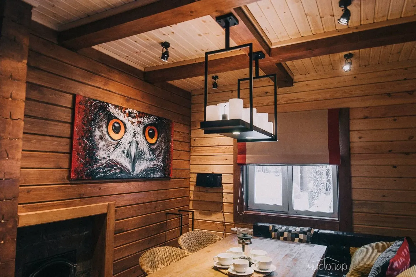 - Просторная парная из кедра с печью на дровах;