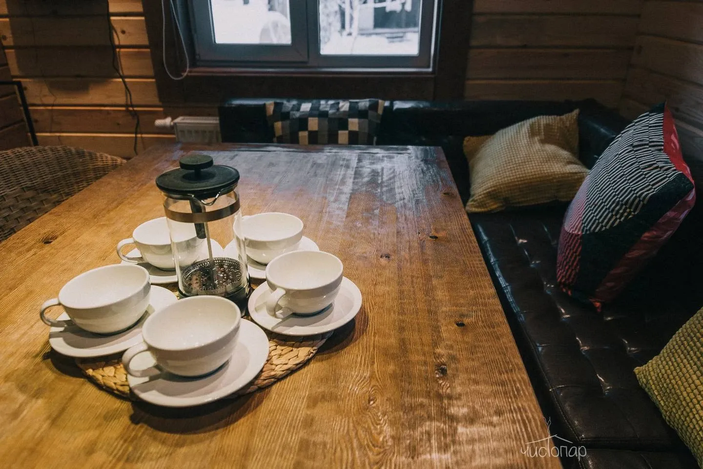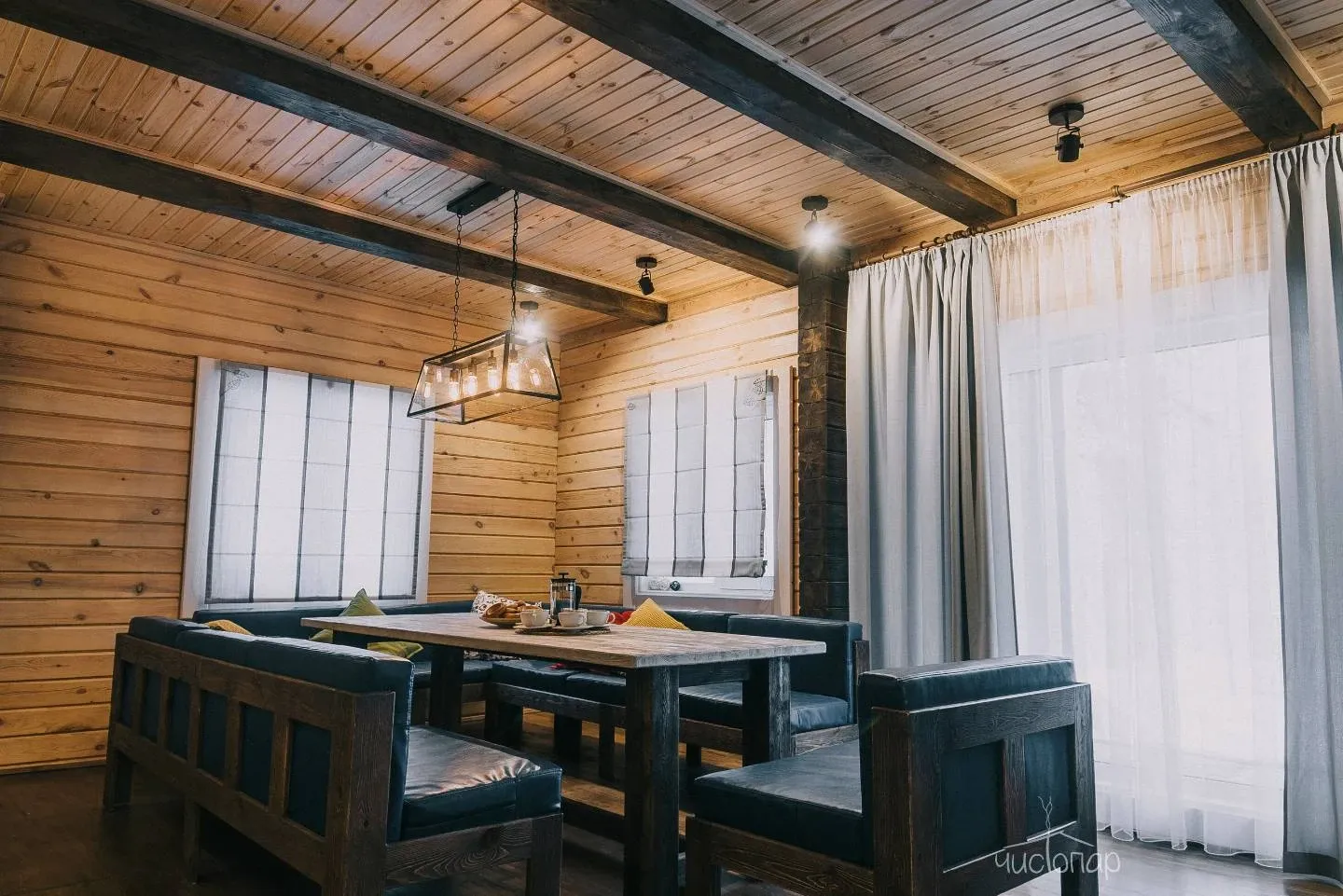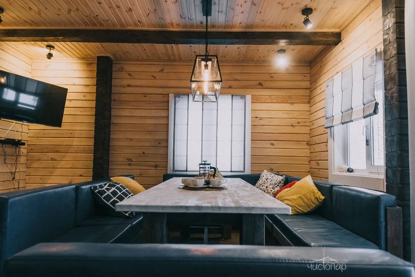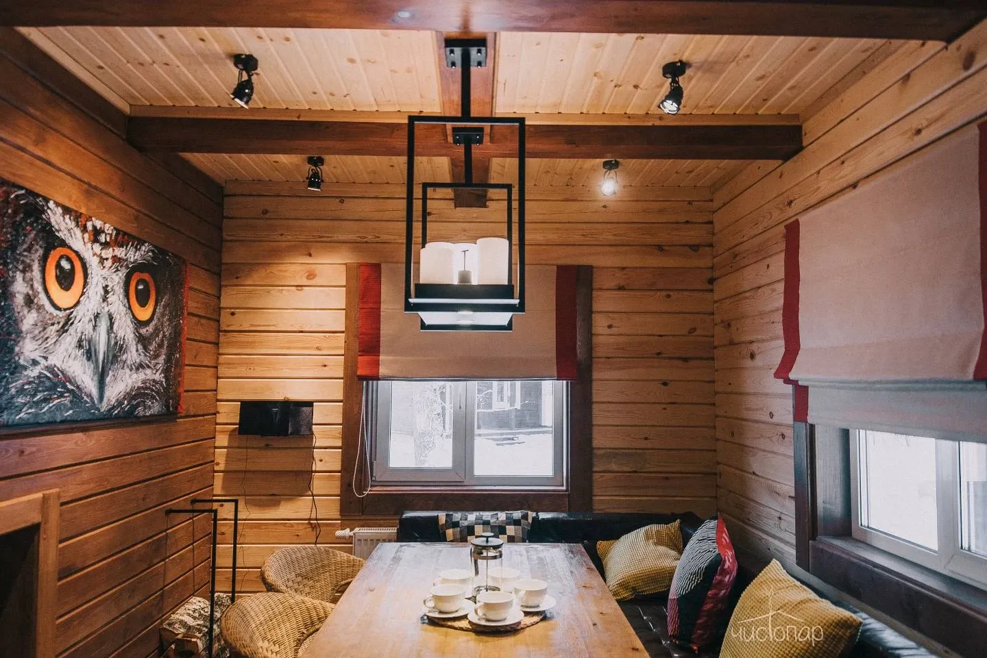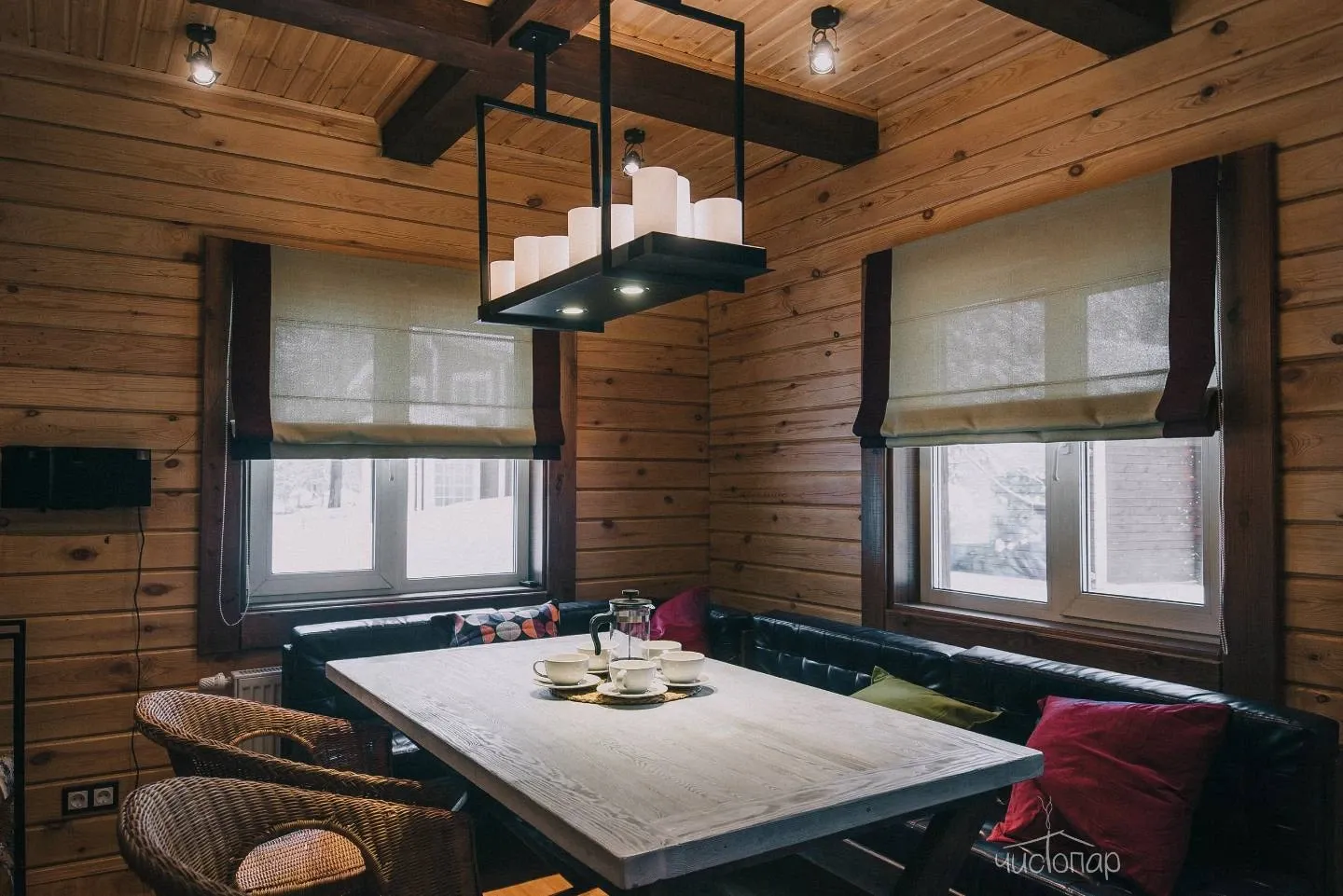 - Просторная парная из кедра с печью на дровах;