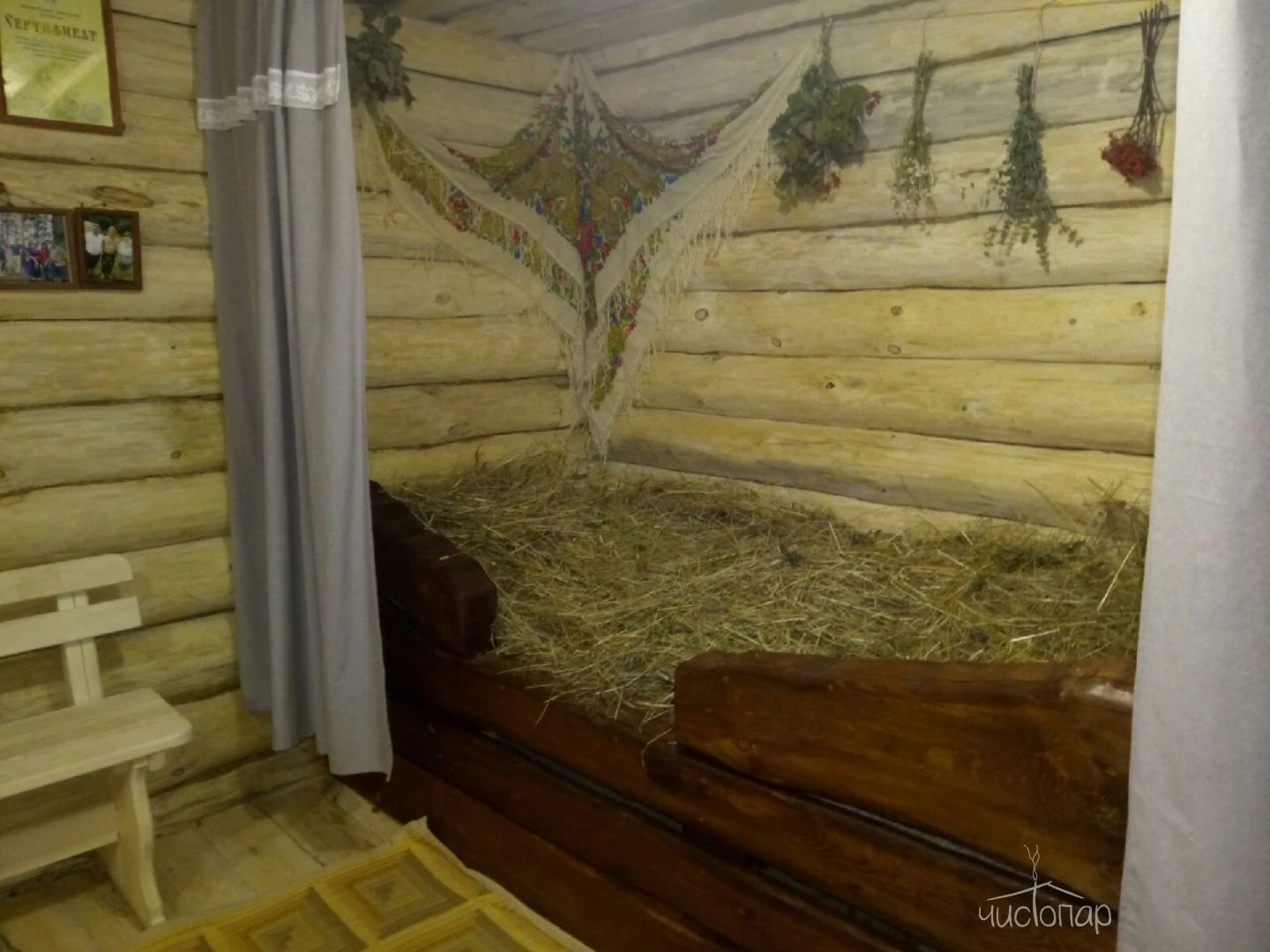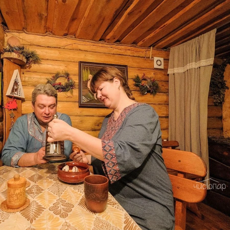 - травяной чай, мёд и сушки в угощение;