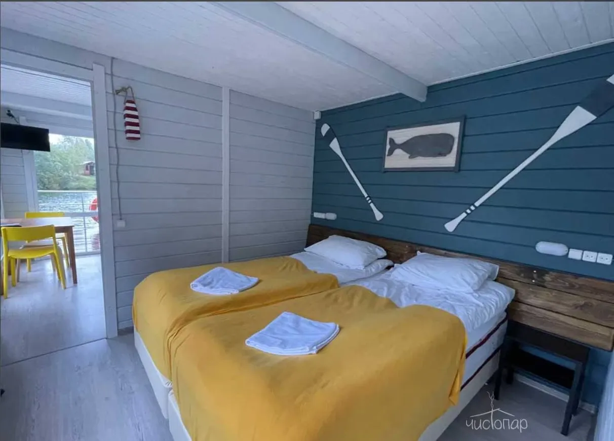Коттедж с баней № 19, 20 для 2-х гостейКоттедж площадью 36 кв.м. Просторная комната с двуспальной кроватью, мини-кухня оснащена холодильником, микроволновой печью, электрочайником, столовыми приборами. Санузел, душевая с обливочным ведром, парная с дровяной топкой, веранда со столом и лавочками, мангал, фен.