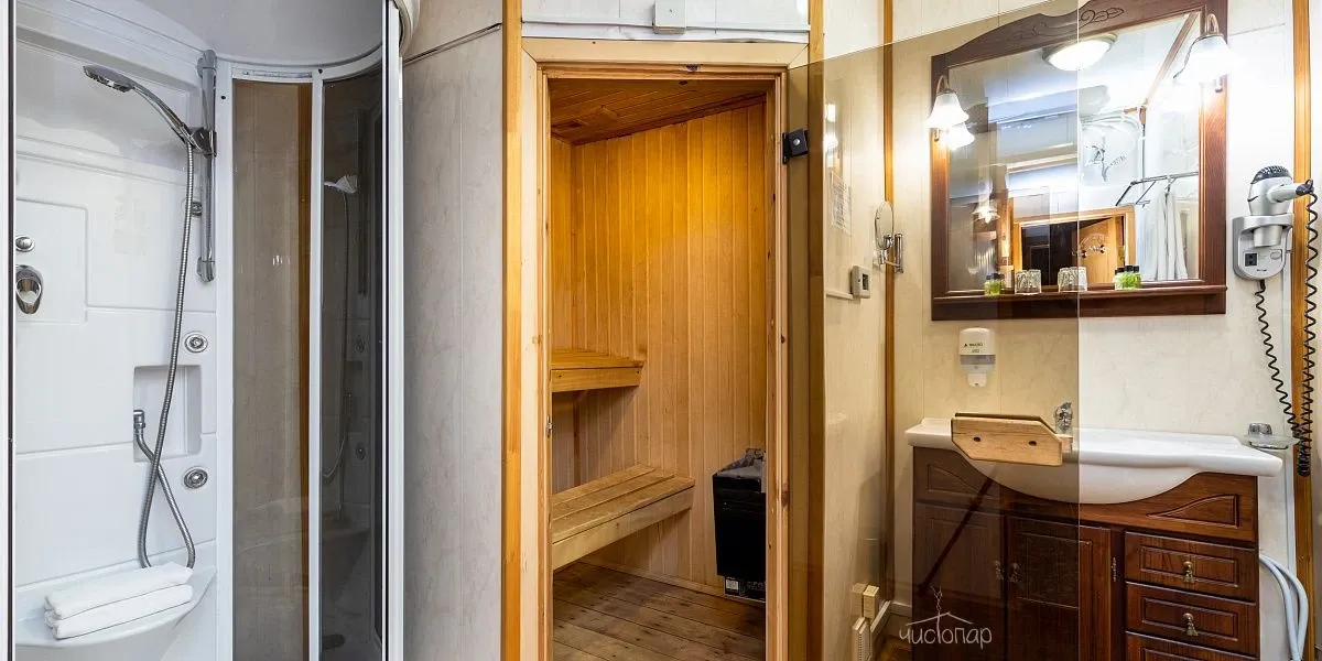 Каждая представляет финскую парную, где есть бассейн, комфортабельная зона для релакса, где можно отдохнуть от горячего пара.