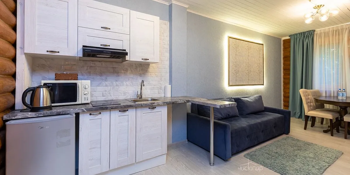 Вместимость: 2 отделения по 4 человека в каждом (комфортное размещение), допустимо до 6 человек в отделение за дополнительную плату.