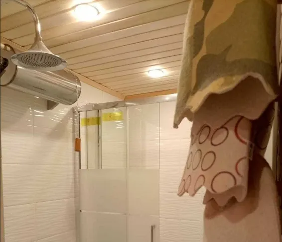 Санузел с душевой и необходимыми принадлежностями и полотенцами, зубными щётками и пастой