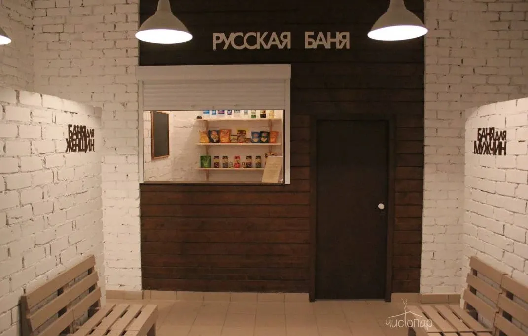 Общие раздевалки, просторные помывочные и парные, тазы, березовые и дубовые веники, чай, квас, пиво.