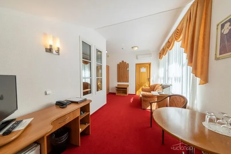 ДЖУНИОР СЮИТ (ПОЛУЛЮКС)Просторные и элегантные номера, выполнены в Классическом стиле. Дополнительные преимущества: халаты и тапочки, ванная вместо душевой кабины, сейф, чайник, кондиционер, комплементарная вода. Идеальное место для работы и отдыха.Читать далее