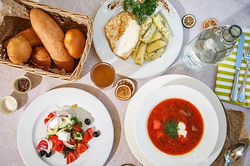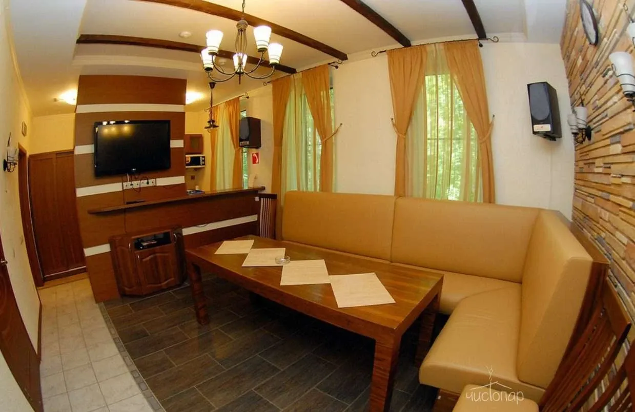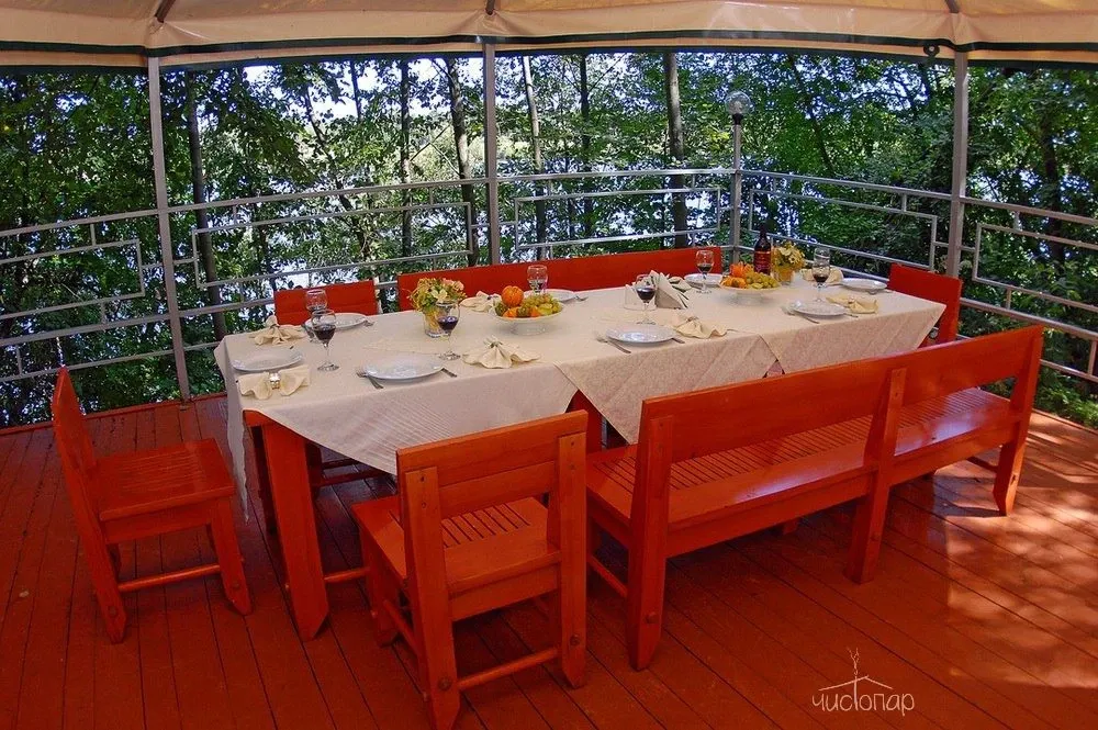 Организовано питание по системе «шведский стол» и «а-ля карт». Удобная парковка на территории Отеля. Детская площадка. Банкетные залы и летний шатер для мероприятий.