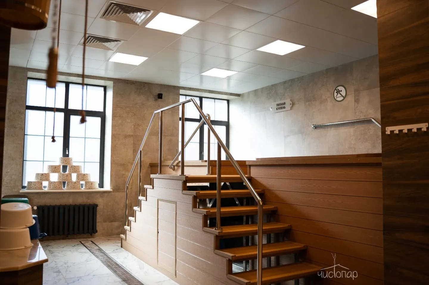 Комплекс предлагает несколько видов парения, включая «Классическое» (2000 ₽), «Сибирское» с ароматной пихтой (2500 ₽) и интенсивное «Сталевара» для крепких духом (2700 ₽).