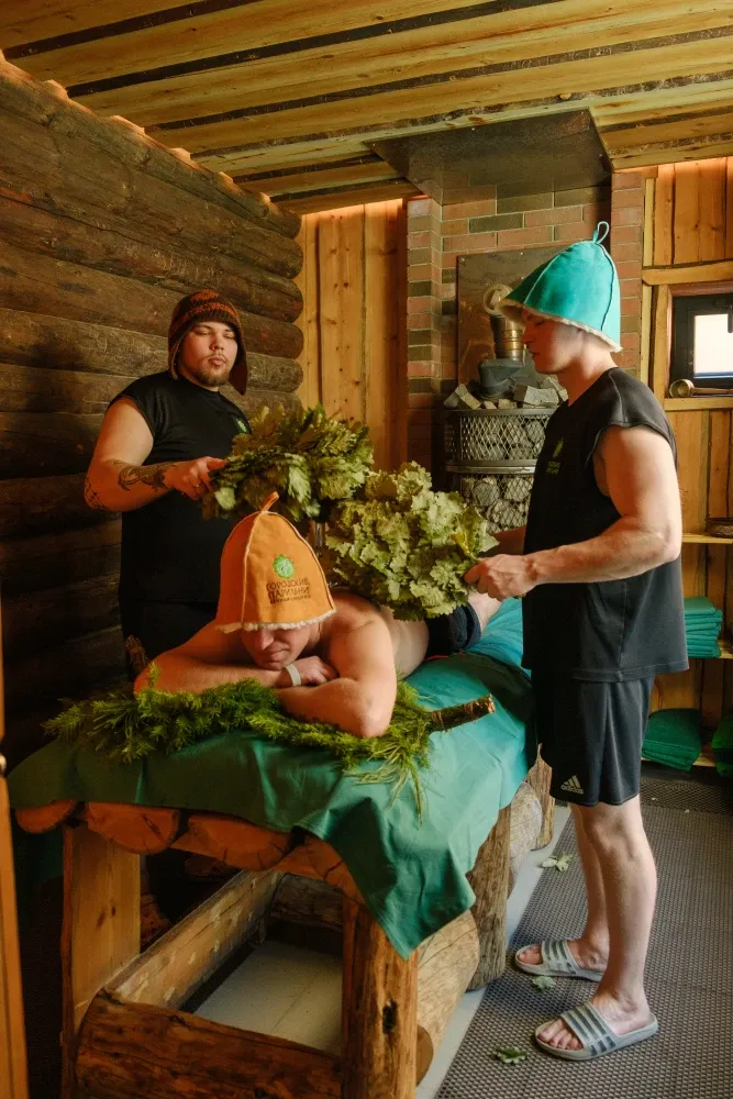 Помимо парения, комплекс предлагает массаж, различные SPA-процедуры и изысканную русскую кухню.