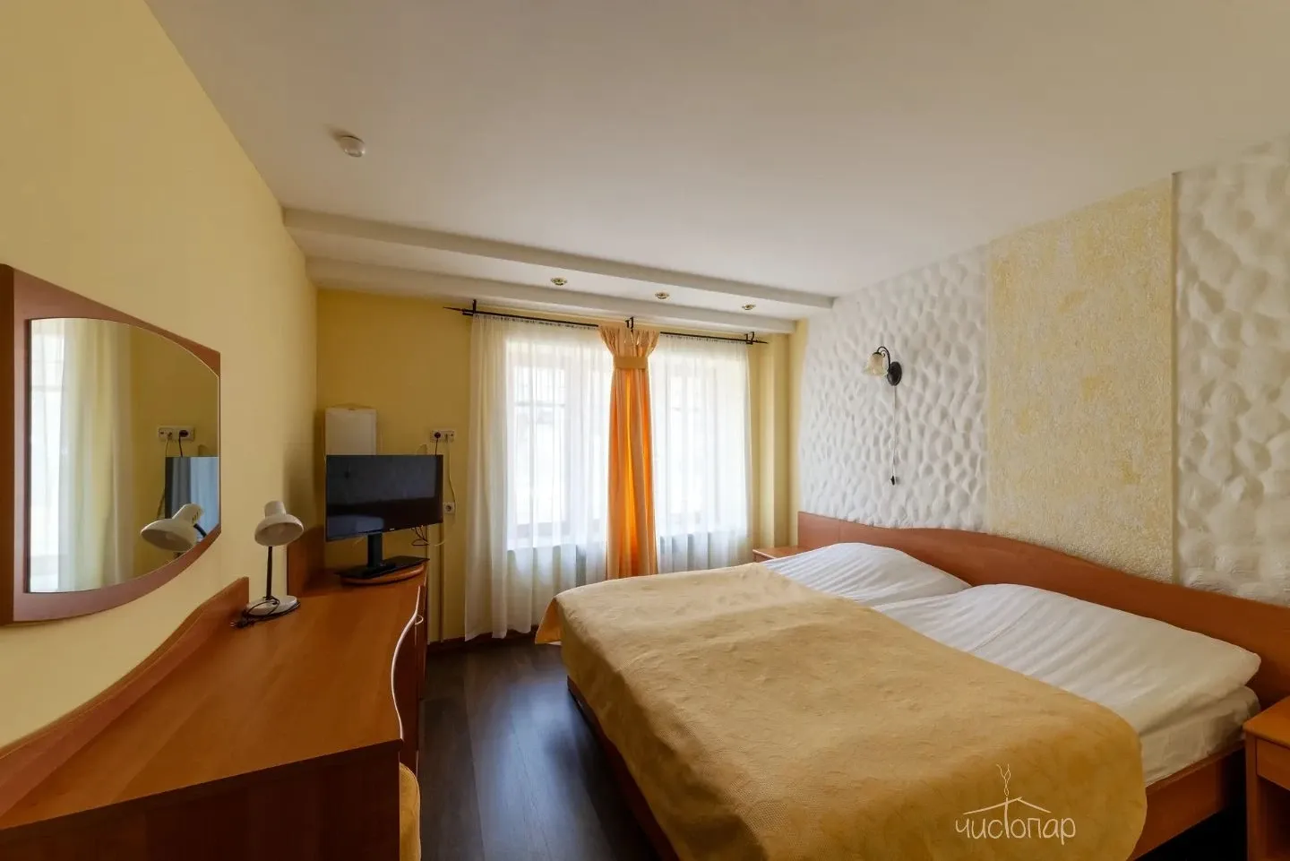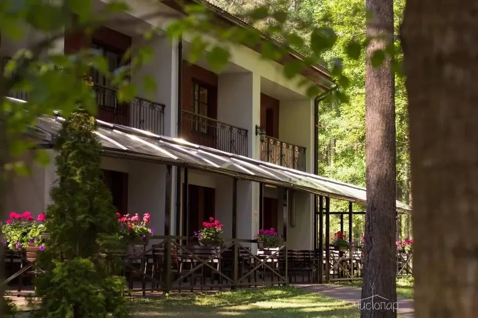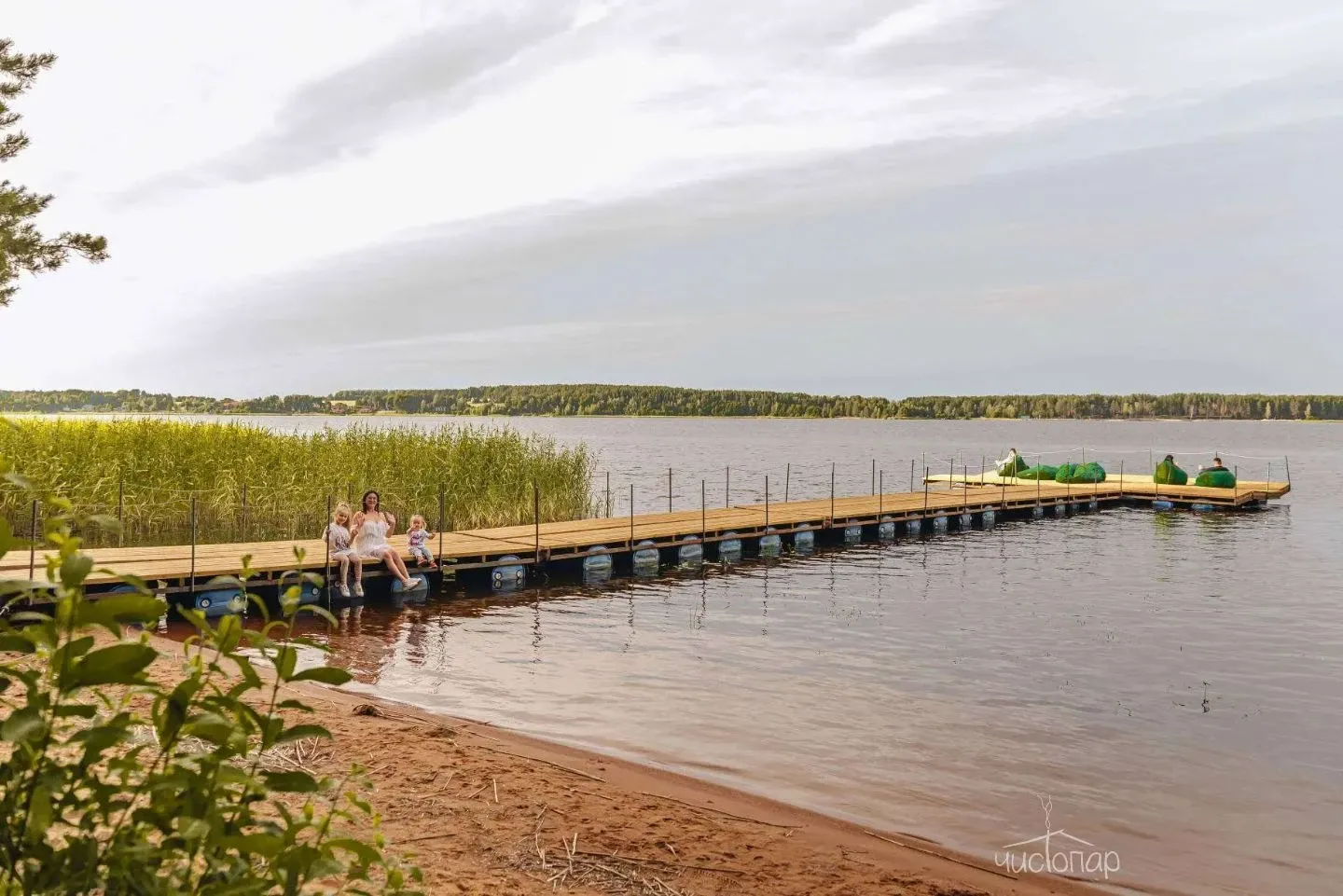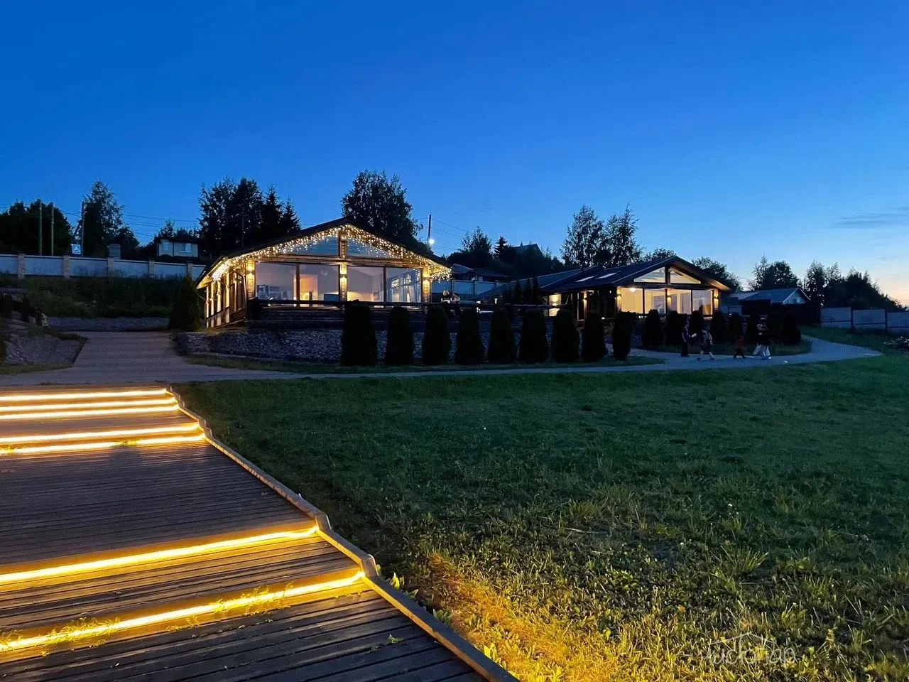 Комфортабельный загородный отель и большая коттеджная база отдыха с отдельными фирменными домиками-пряниками. На территории курорта находятся ресторан, зоны барбекю, спортивные площадки, исторический музей, зоопарк и песчаный пляж с пирсом.