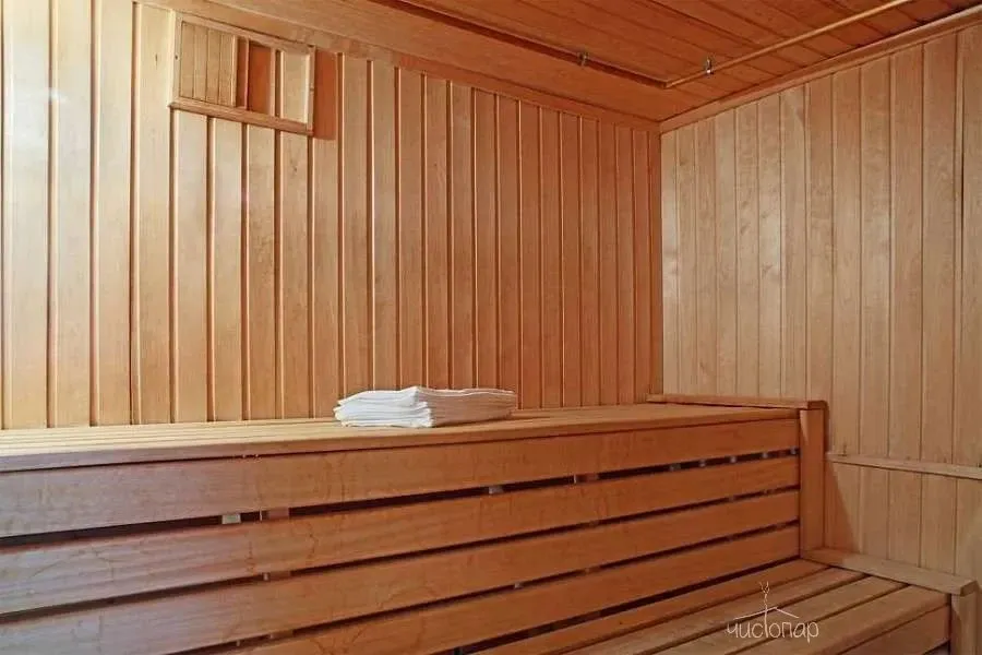 Банный комплекс, находящийся на базе отдыха, состоит из трех горячих дровяных бань с комнатой отдыха, парилкой, бассейном, санузлом, душем и раздевалкой в каждой. Если баня не подходит по состоянию здоровья, предлагают гостям воспользоваться сауной с сухим паром. Здесь имеется бассейн размерами 16х5 м с системой гидромассажа (противотоки и гейзеры).