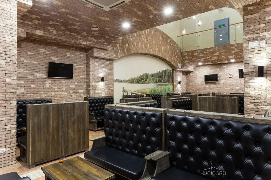 В женском отделении дополнительно 3 кабинки на 6-10 персон, в мужском отделении 2 кабинки на 6-10 персон, а также 2 семейные кабинки: на 2-3 и 6-10 персон. Все кабинки оборудованы мягкой мебелью, телевизором.