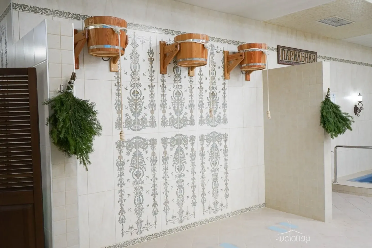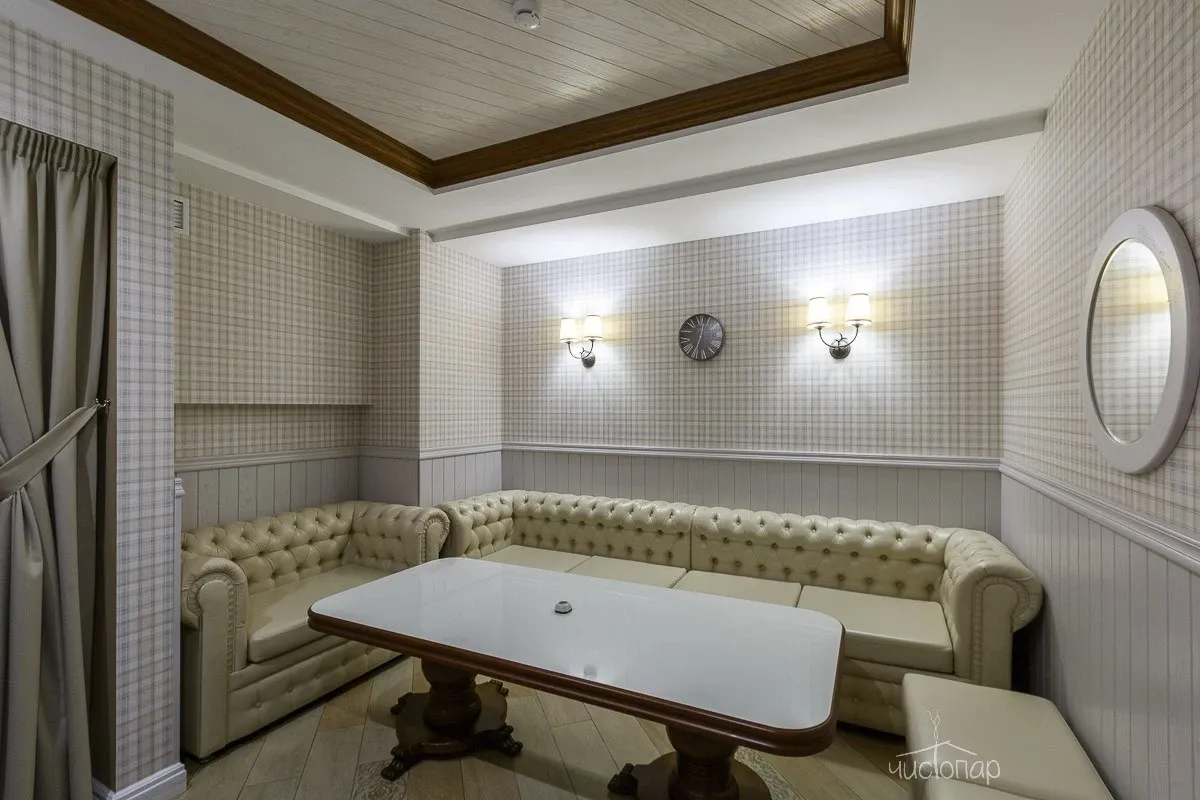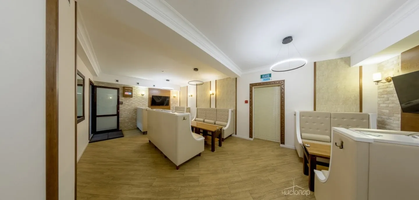 Шикарный пар, просторные помещения, стильный интерьер, профессиональные специалисты, вкусная кухня, большой выбор услуг по парению, массажу и скрабированию.