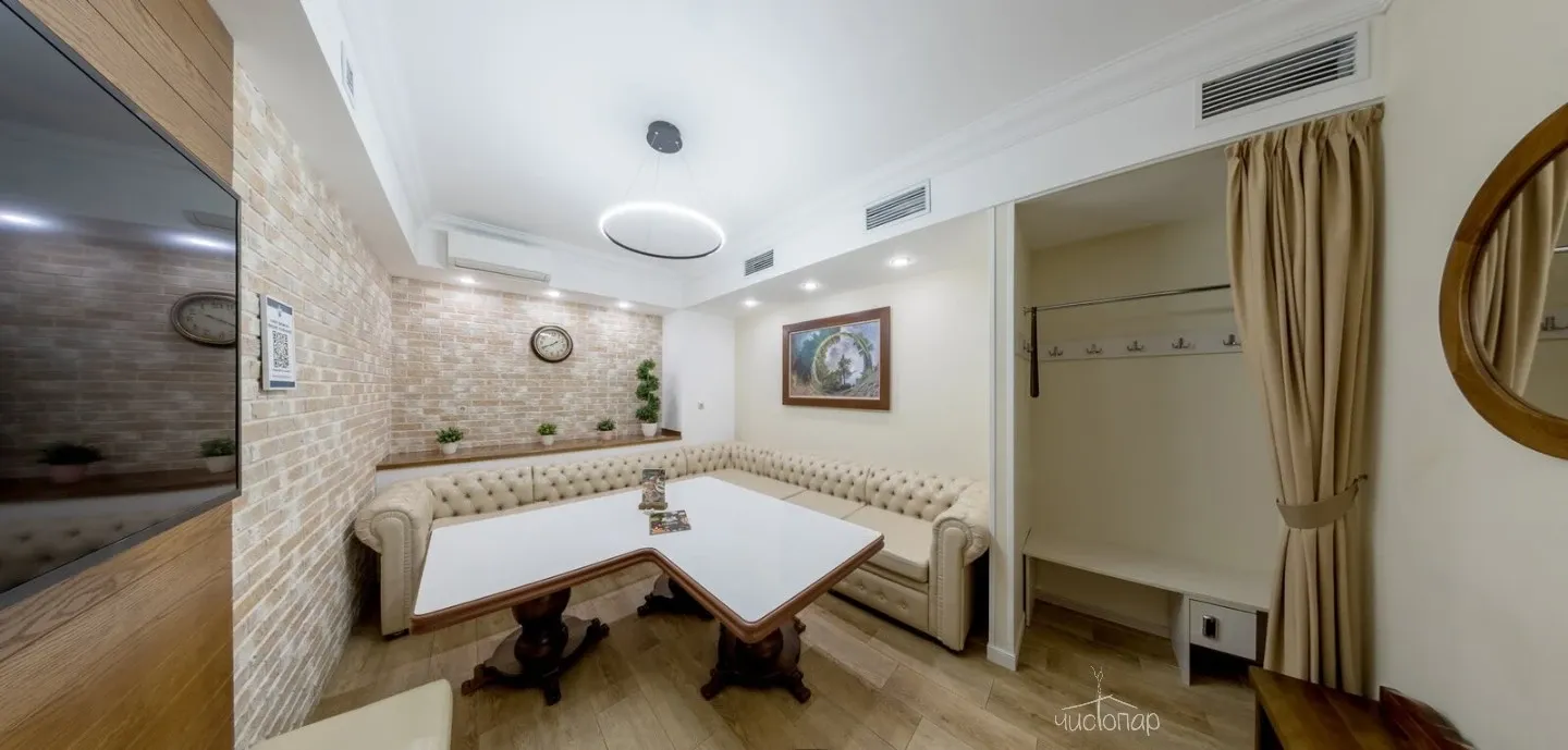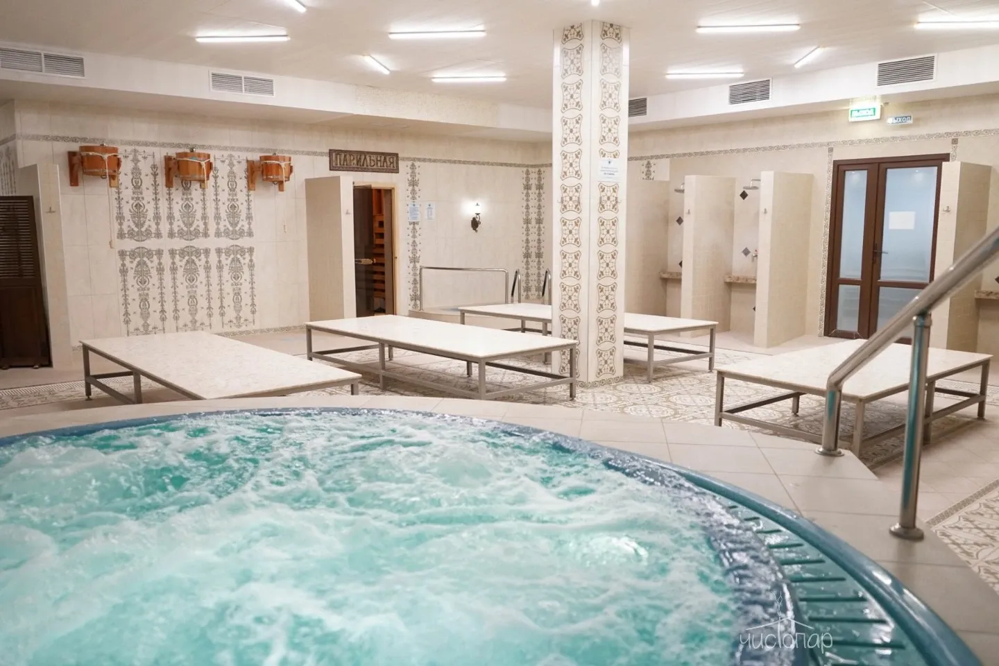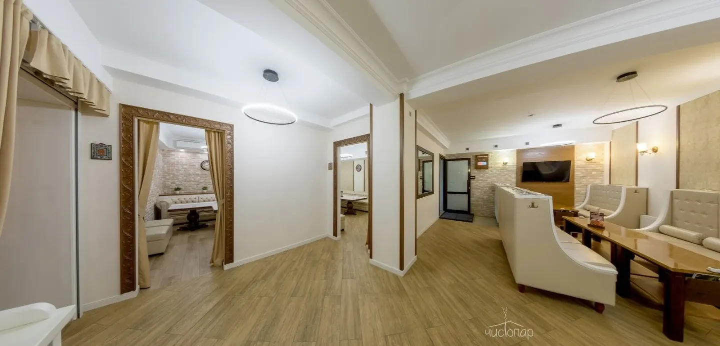 Шикарный пар, просторные помещения, стильный интерьер, профессиональные специалисты, вкусная кухня, большой выбор услуг по парению, массажу и скрабированию.