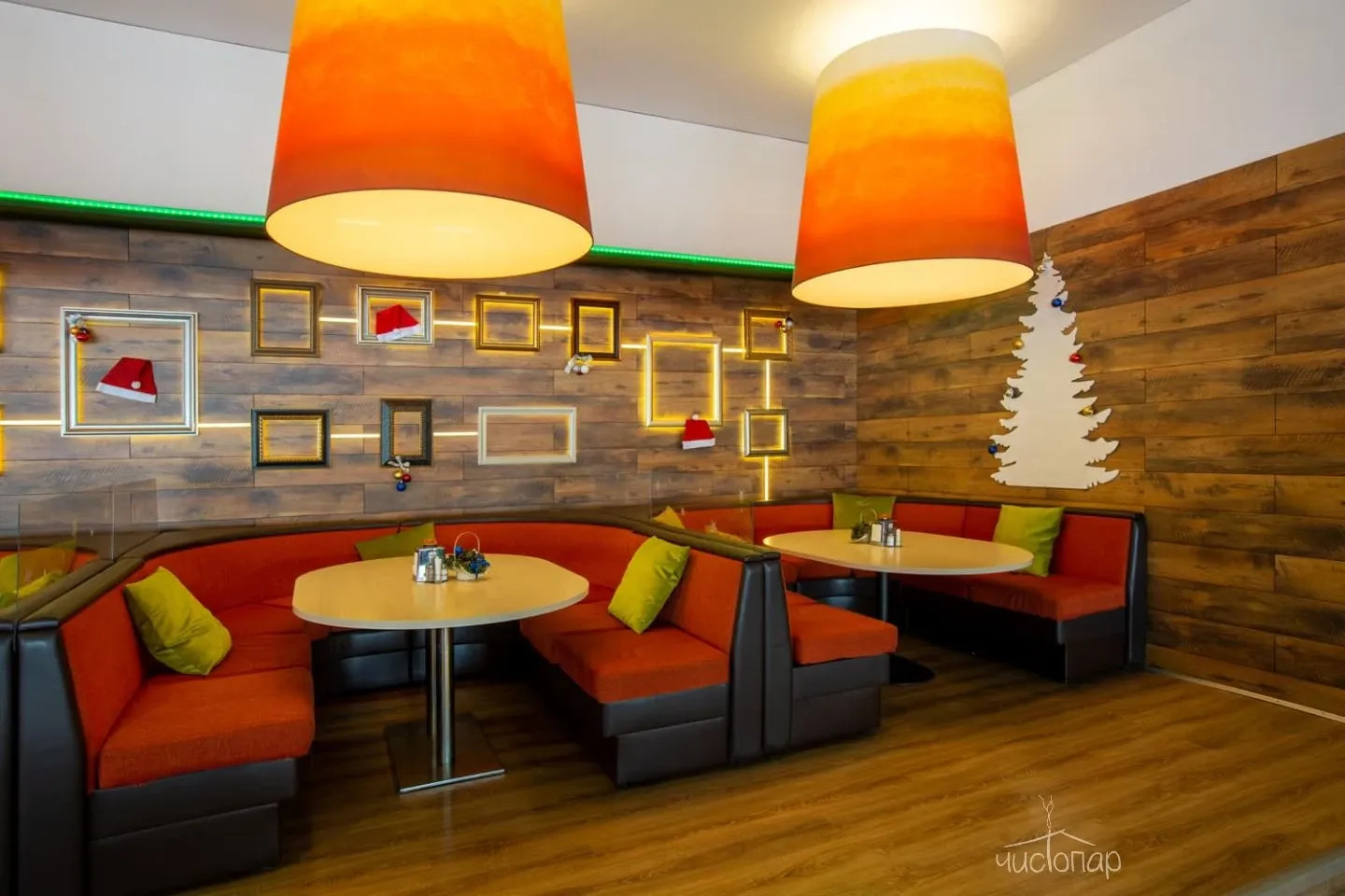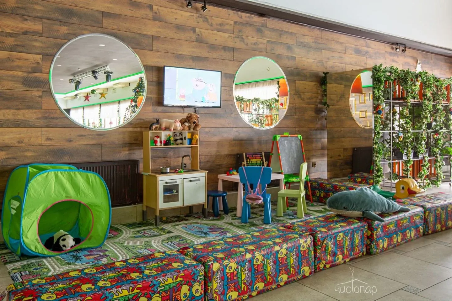 • Детская площадка на свежем воздухе и детская игровая в ресторане