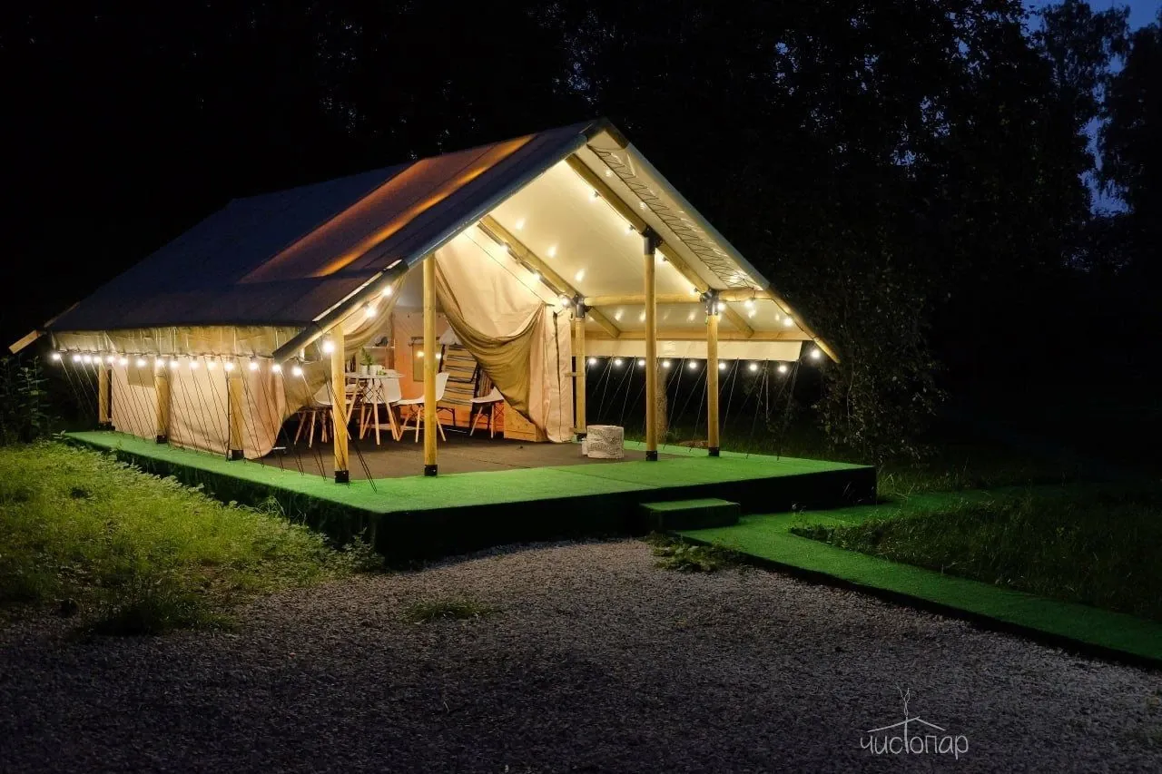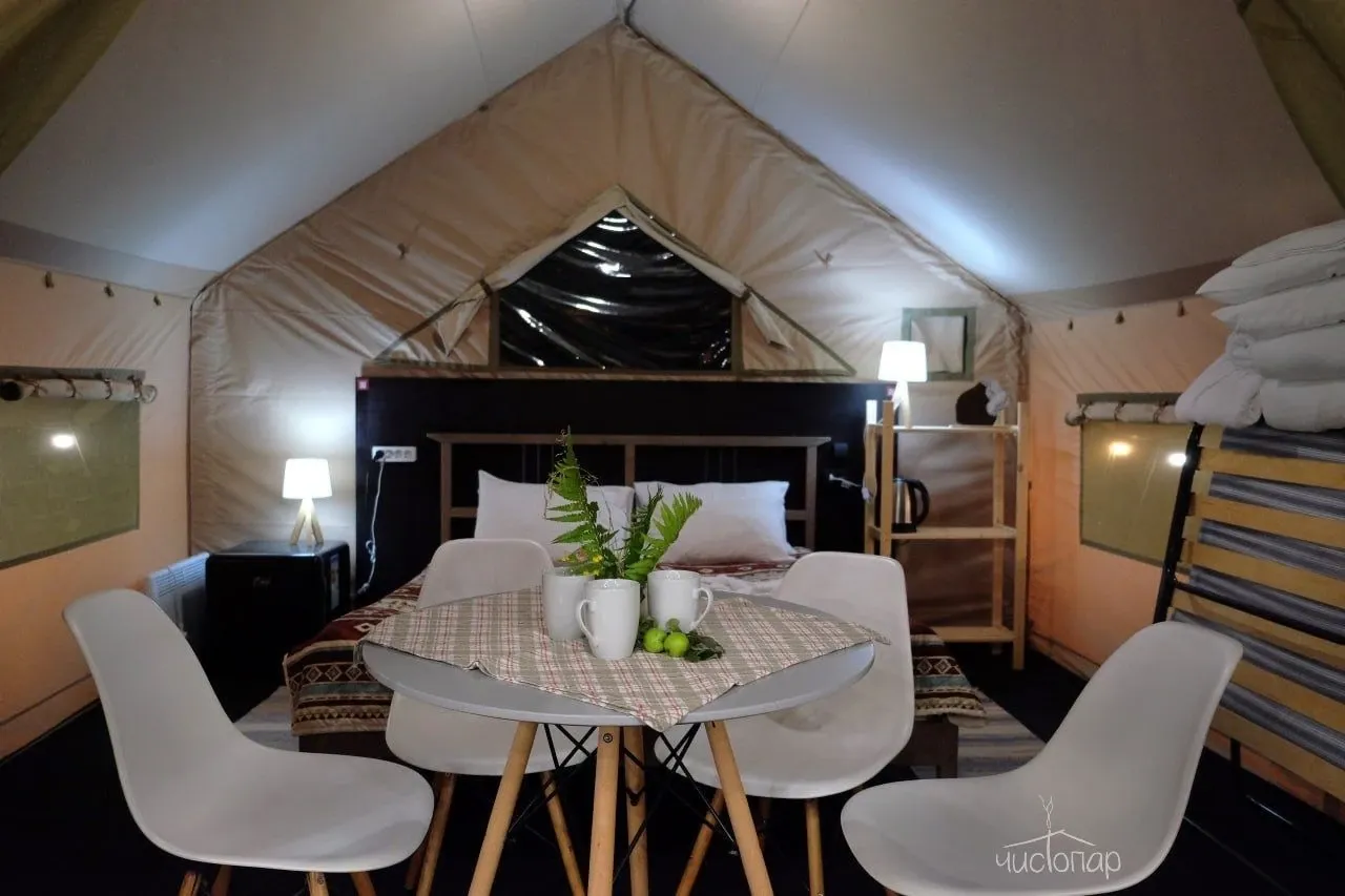 Также для гостей появился уникальный глэмпинг, где можно отдохнуть на лоне природы от шума каменных джунглей в специальном комфортном тенте.
