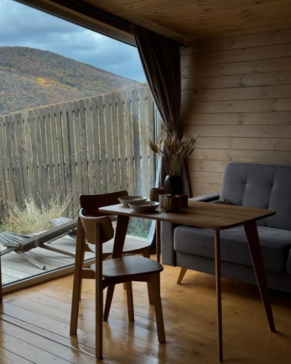 Эко-отель «Лес» - это отдых в уютных и комфортных домиках с панорамным видом на лес и горы. Ужин на свежем воздухе. Мангал или барбекю. Треск дров и аромат дыма.