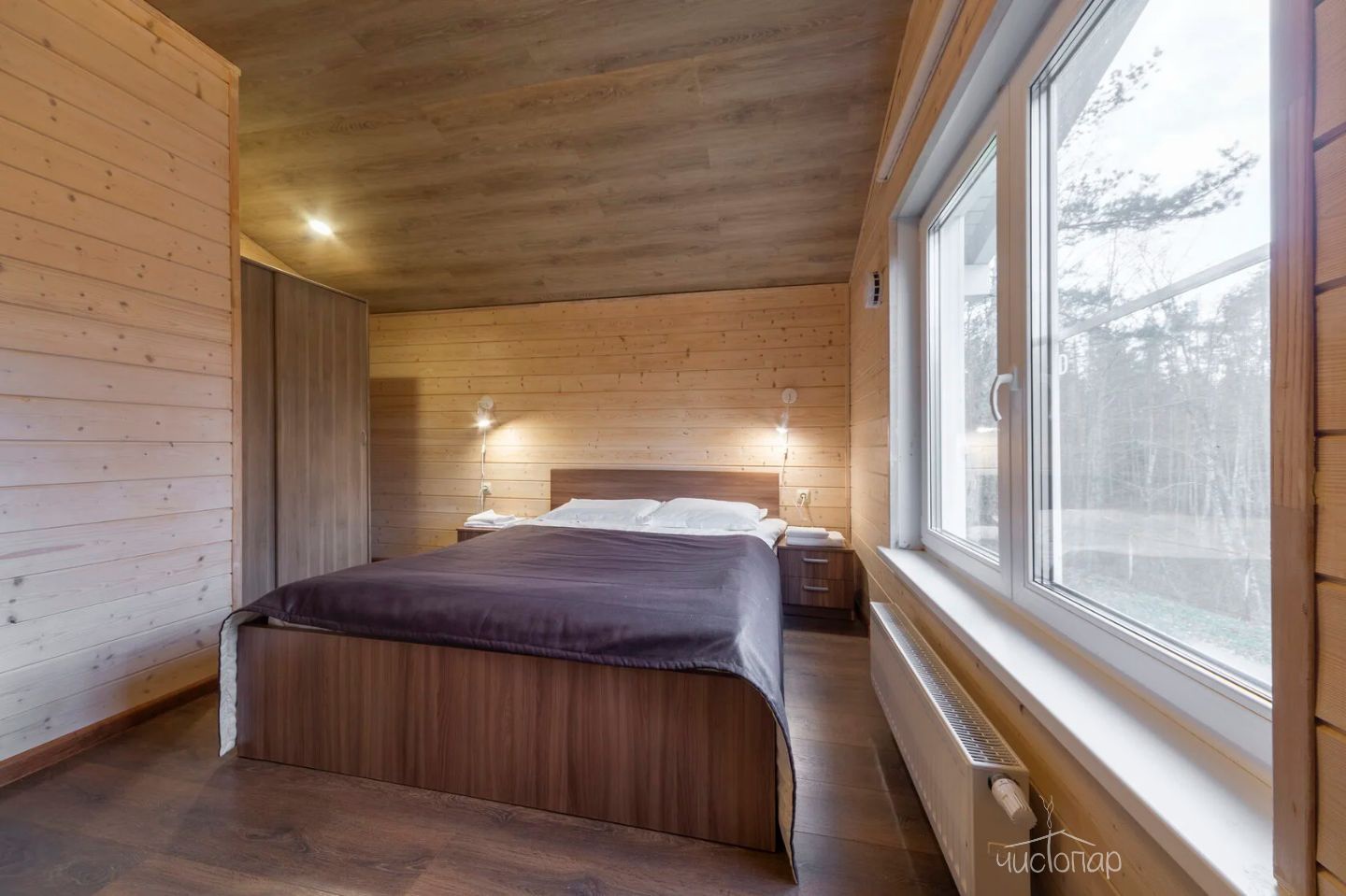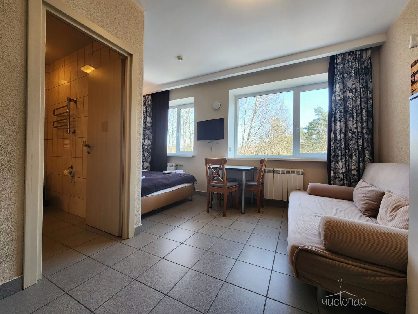 Отдельная спальня с двуспальной кроватью + раскладной диван.