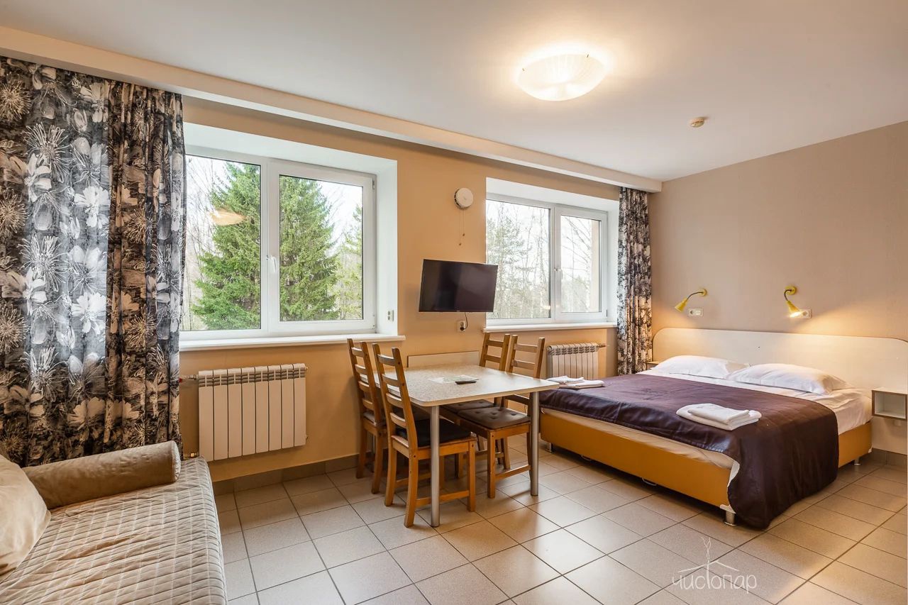 Номерной фонд базы состоит из основного корпуса, имеющего сертификат 3 звезды, и уютных коттеджей, выполненных из современных материалов.
