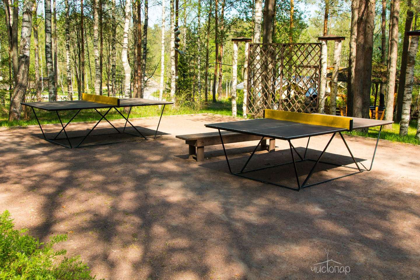 На территории расположены современные спортивные площадки для баскетбола, волейбола, футбола и бадминтона, тренажеры, многочисленные беседки с грилем и мангальные зоны. Зимой заливается каток, организована теплая раздевалка, работает горка для «ватрушек». Есть прокат спортивного инвентаря.