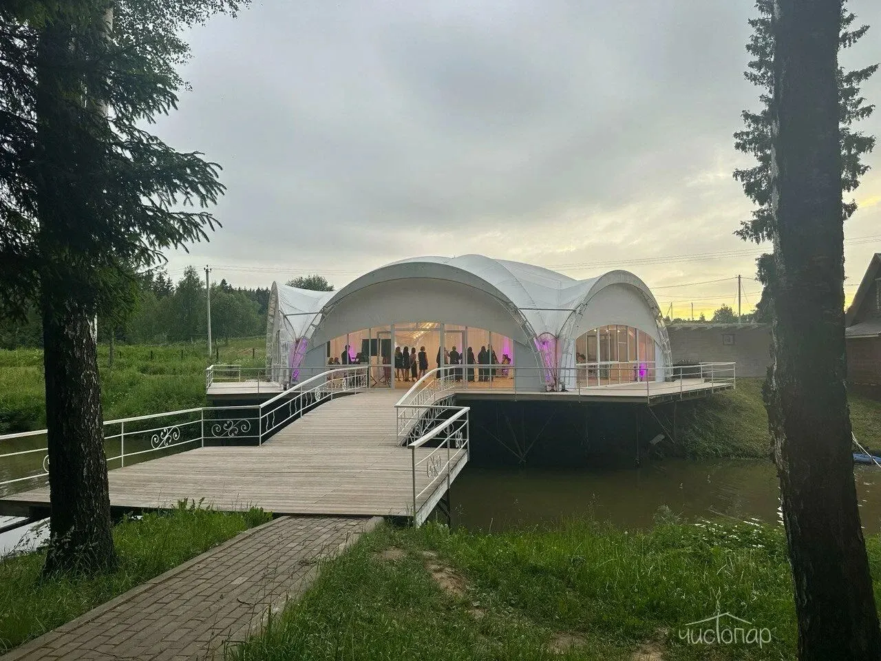 Площадки для выездных мероприятий: банкетный зал площадью 400 кв. метров со сценой и всем необходимым для организации развлекательных программ; конференц-зал, свадебные шатры у воды.