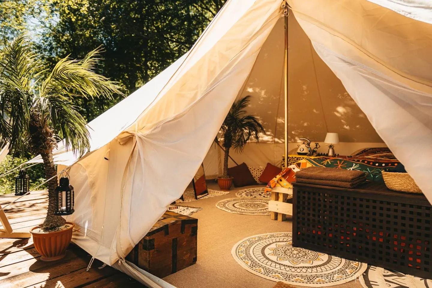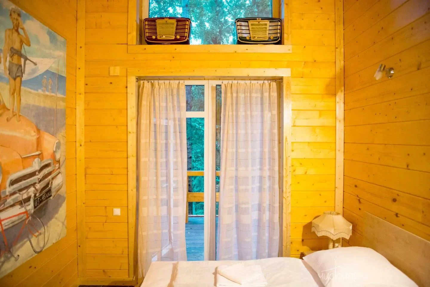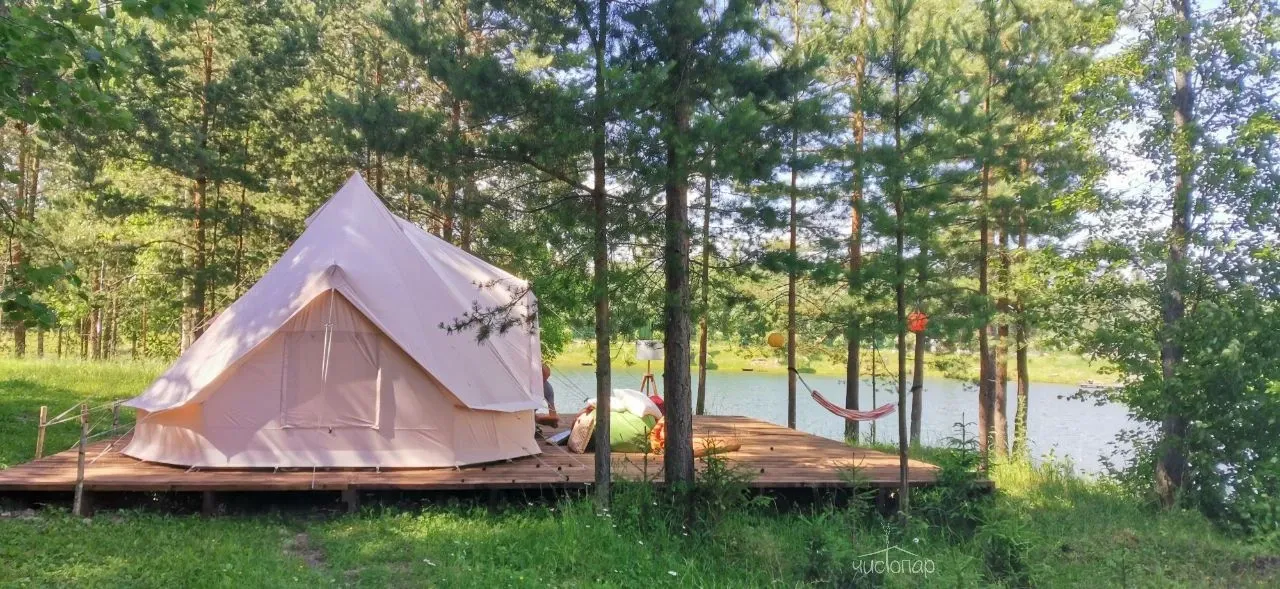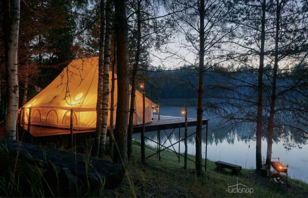 Палатки расположились на берегу водоема, а значит, можно любоваться видами прямо из кровати. Жилье обставлено мебелью, есть электричество, обогреватель, душевые принадлежности.