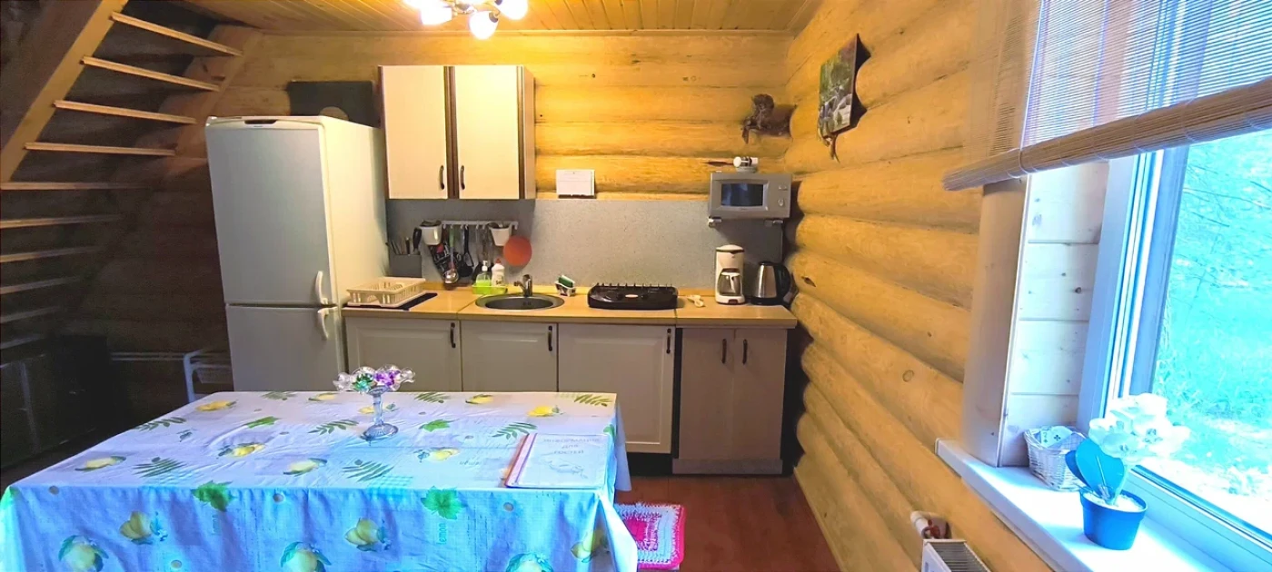 Дом ЛеснойДом сложен из сруба. Состоит из 2 комнат, кухни, санузла. Комфортное размещение - 5 чел., максимальное - 7 чел.