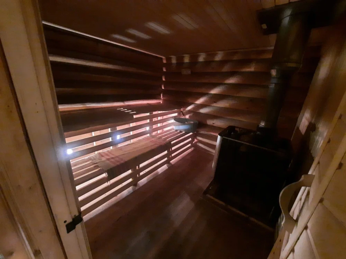 На территории базы есть русская баня на дровах, беседка с мангалом, а также детская площадка с батутом, качелями и песочницей. Гости могут взять напрокат лодку с мотором, снасти или воспользоваться услугами егеря.