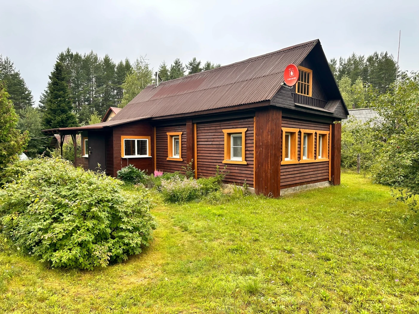 В этом доме есть большая терраса, где можно любоваться лесом, полем, насладиться ароматом диких трав, пением птиц.