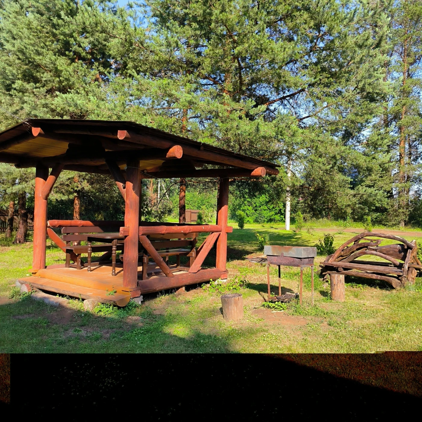 Также здесь имеется костровая зона, где можно разжечь костер. Участок обнесен забором, поэтому тут чувствуется уединённость.