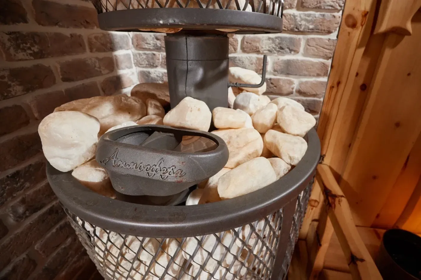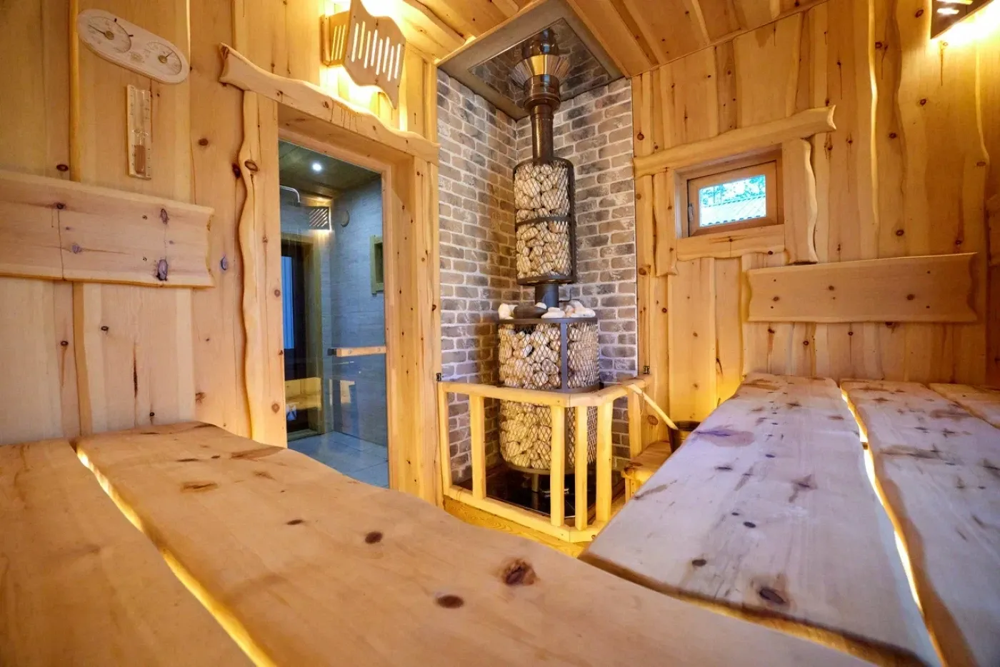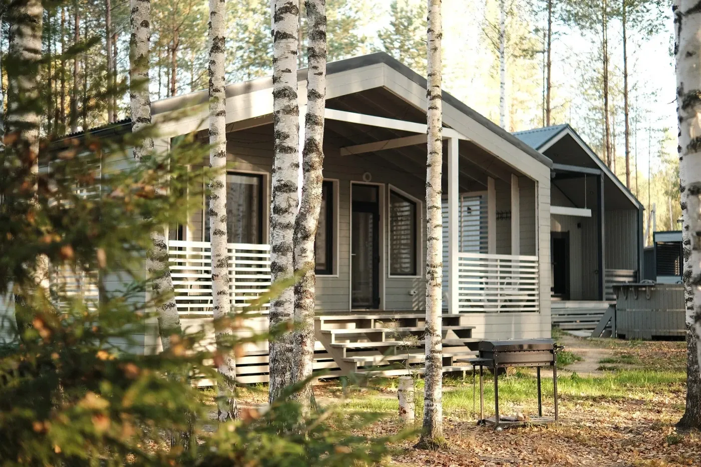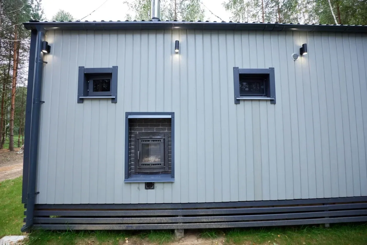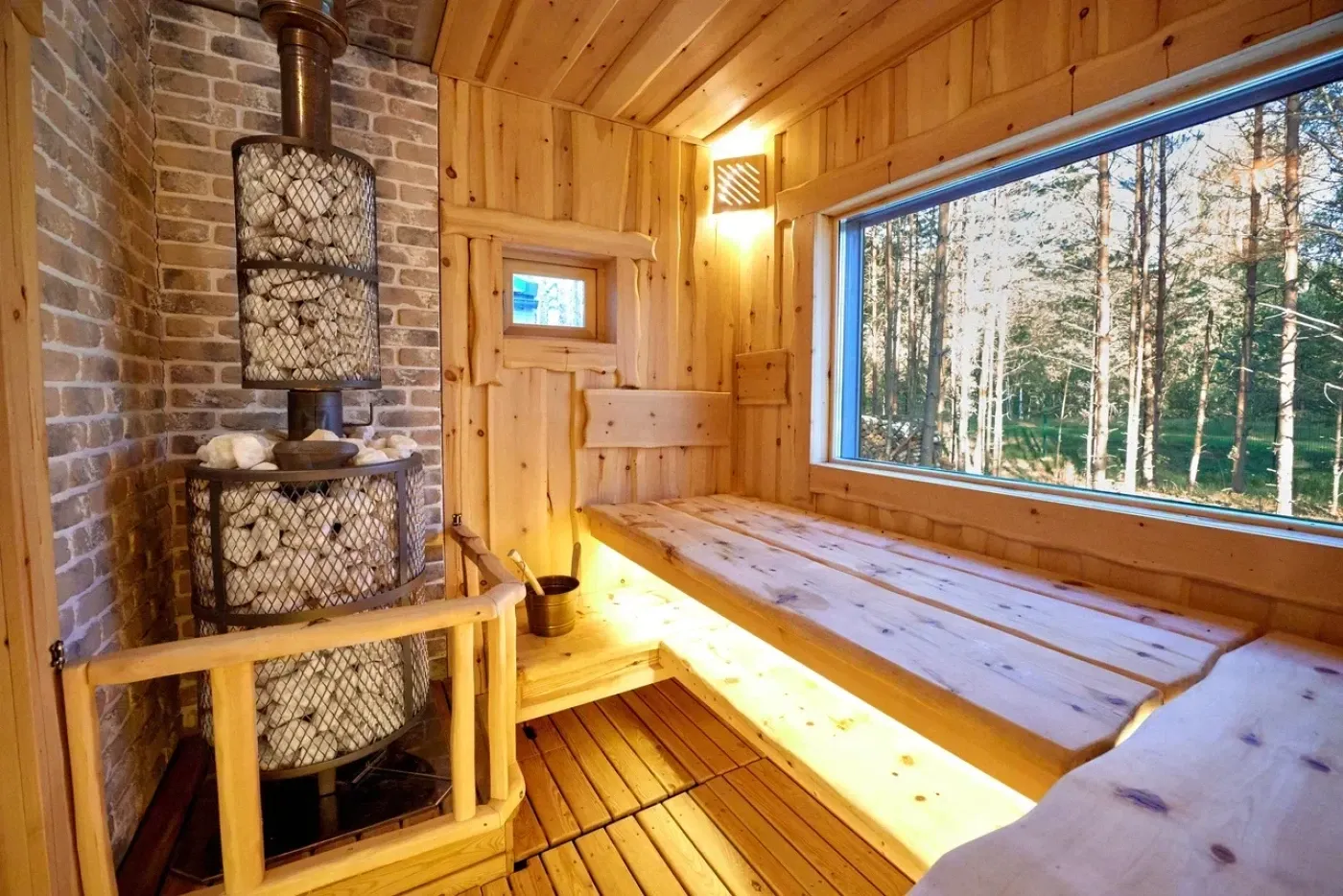 Дом с банным чаномУютный гостевой дом для 4 человек: Спальни: 2 (с двуспальной кроватью и две 1,5 спальные кровати) Общая зона: Просторная кухня-гостиная с обеденным столом, мягкой зоной отдыха перед камином.