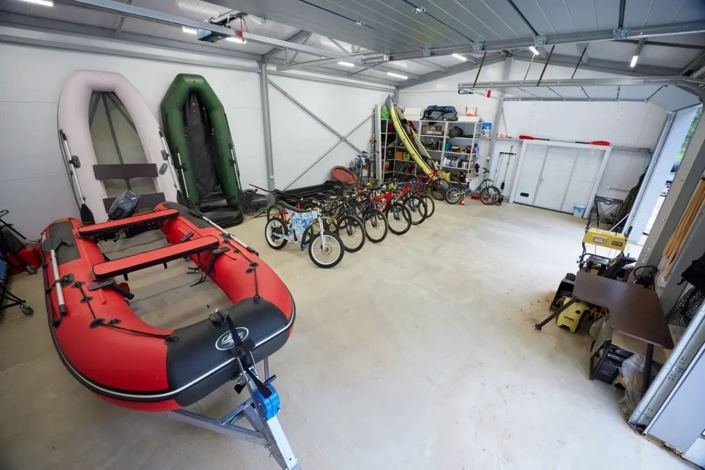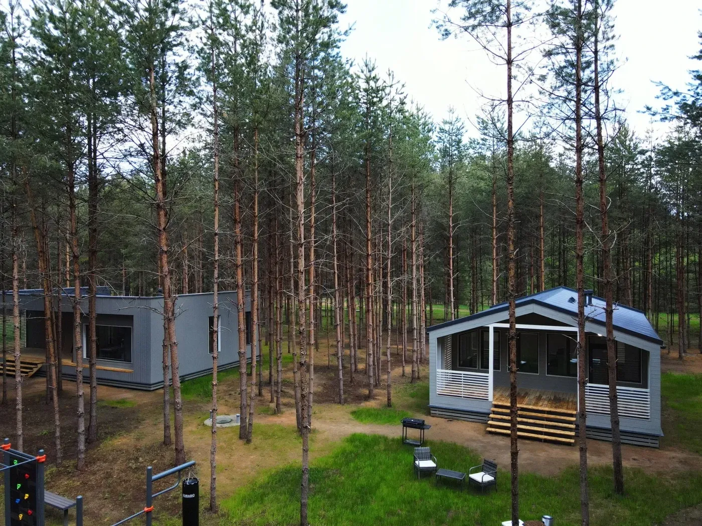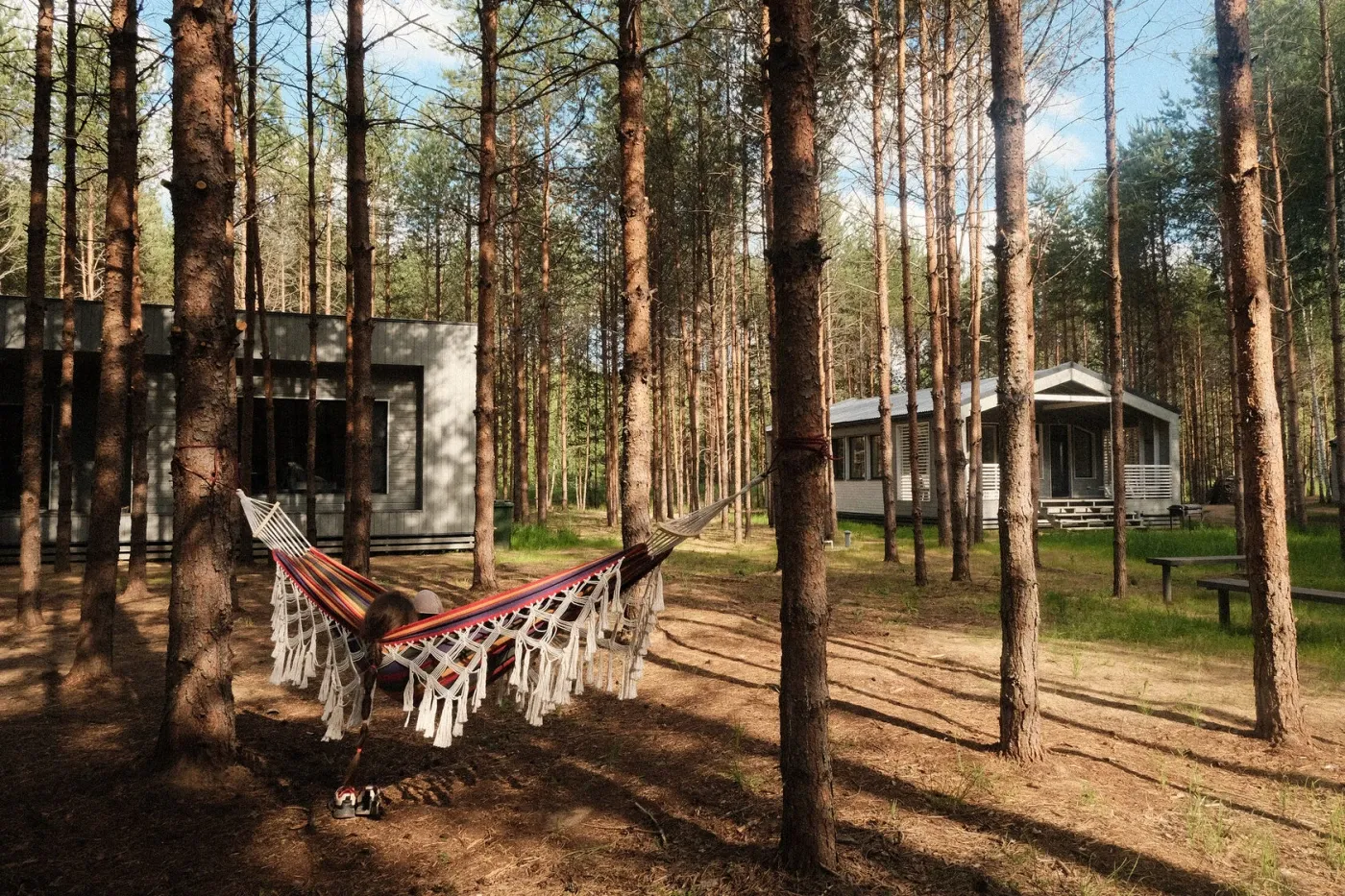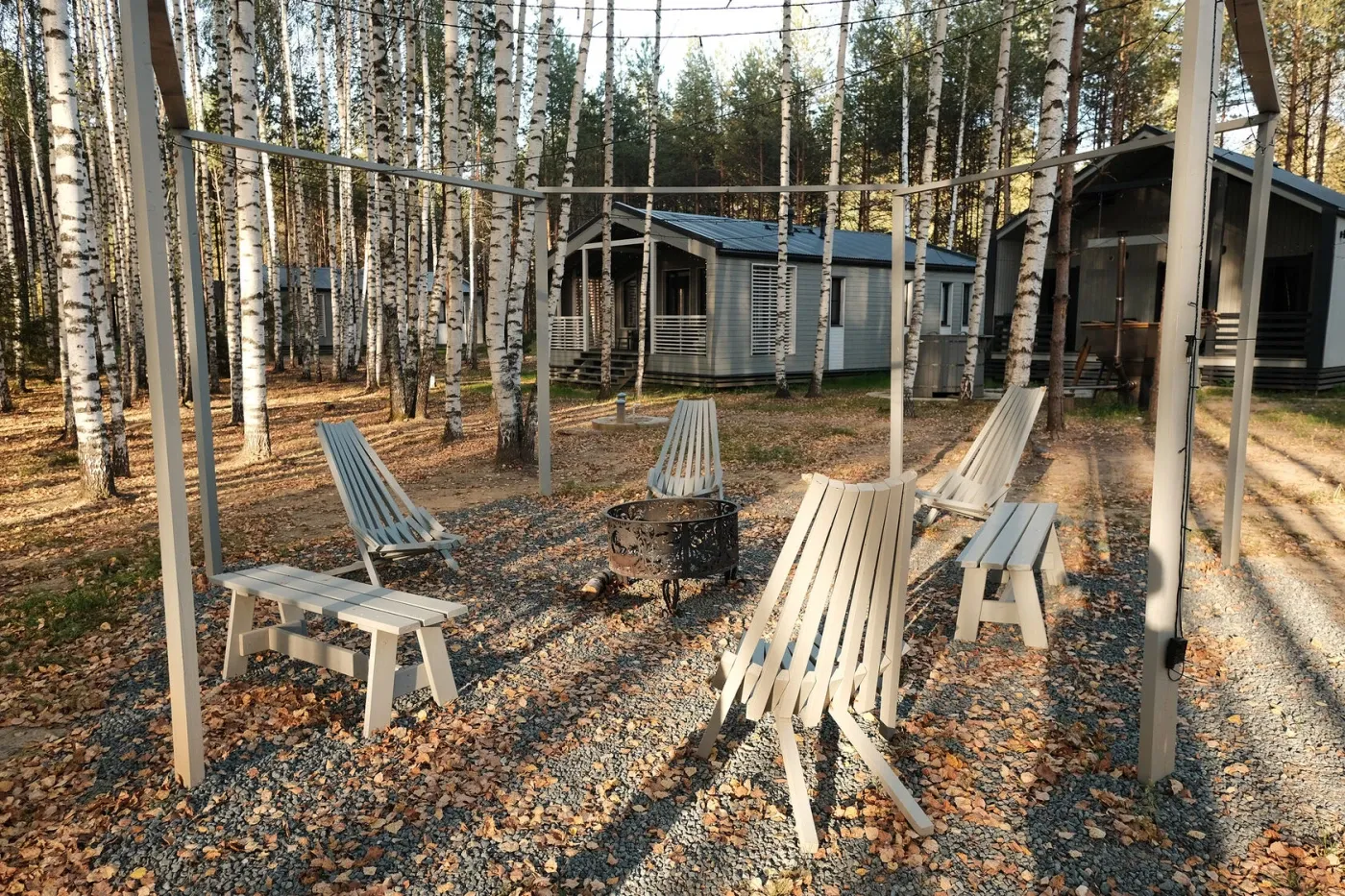 На приватной территории базы, в окружении смешанного леса, расположены шесть гостевых домов, банный комплекс, ангар для хранения техники и снаряжения, детская и спортивная площадка.