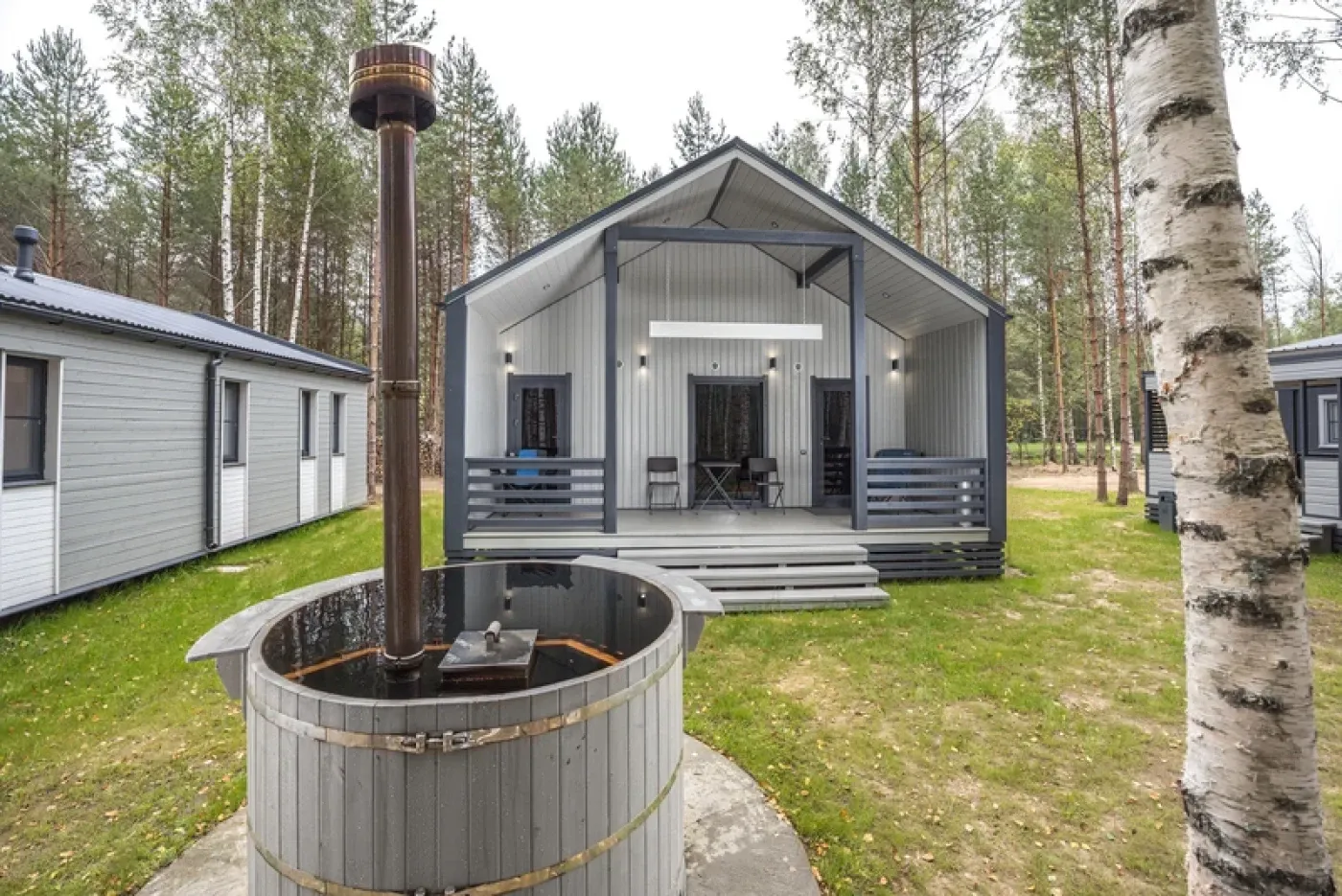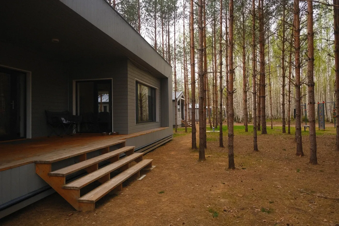 Современный коттедж № 4 - 80 кв м | 2 спальни |на 2+2+1 персон| санузел с ванной | большая видовая терраса|в окружении леса на огороженной территории 3 Га