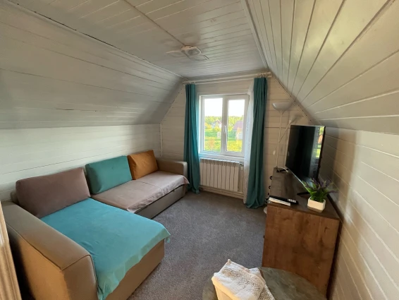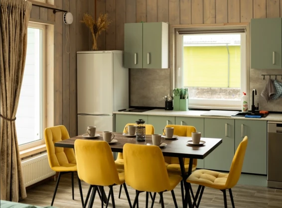 Коттедж «Зелёный»Включено: Wi-Fi, ТВ, посудомоечная машина, стиральная машина, фен, красивый сервиз, электрическая плита и вся необходимая посуда, постельное белье, полотенца, предметы личной гигиены, СВЧ, чайник, хол-к.