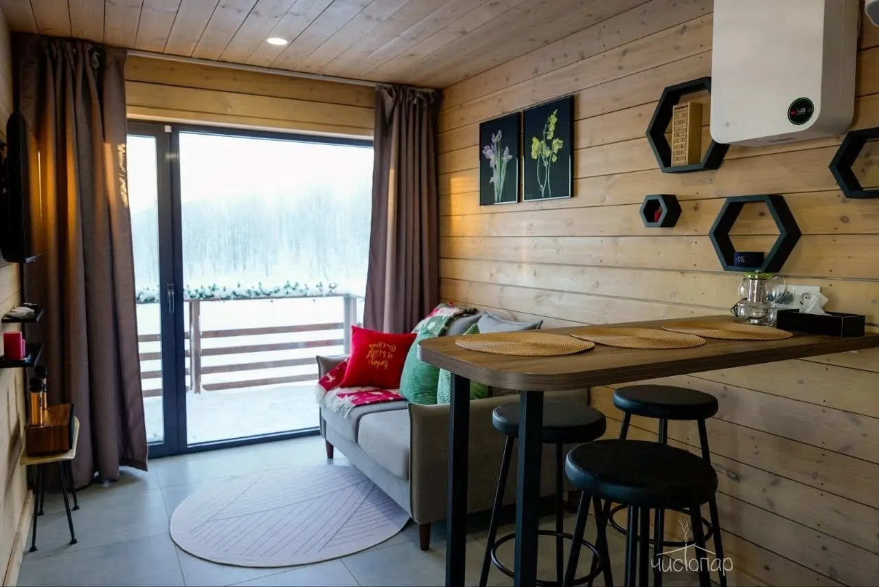 - комфортабельное проживание в домиках Шале (технология "Умный дом с Алисой", новая техника Xiaomi и быстрый Wi-Fi);