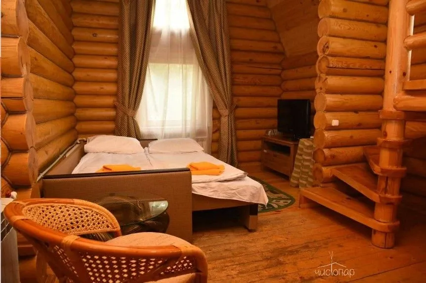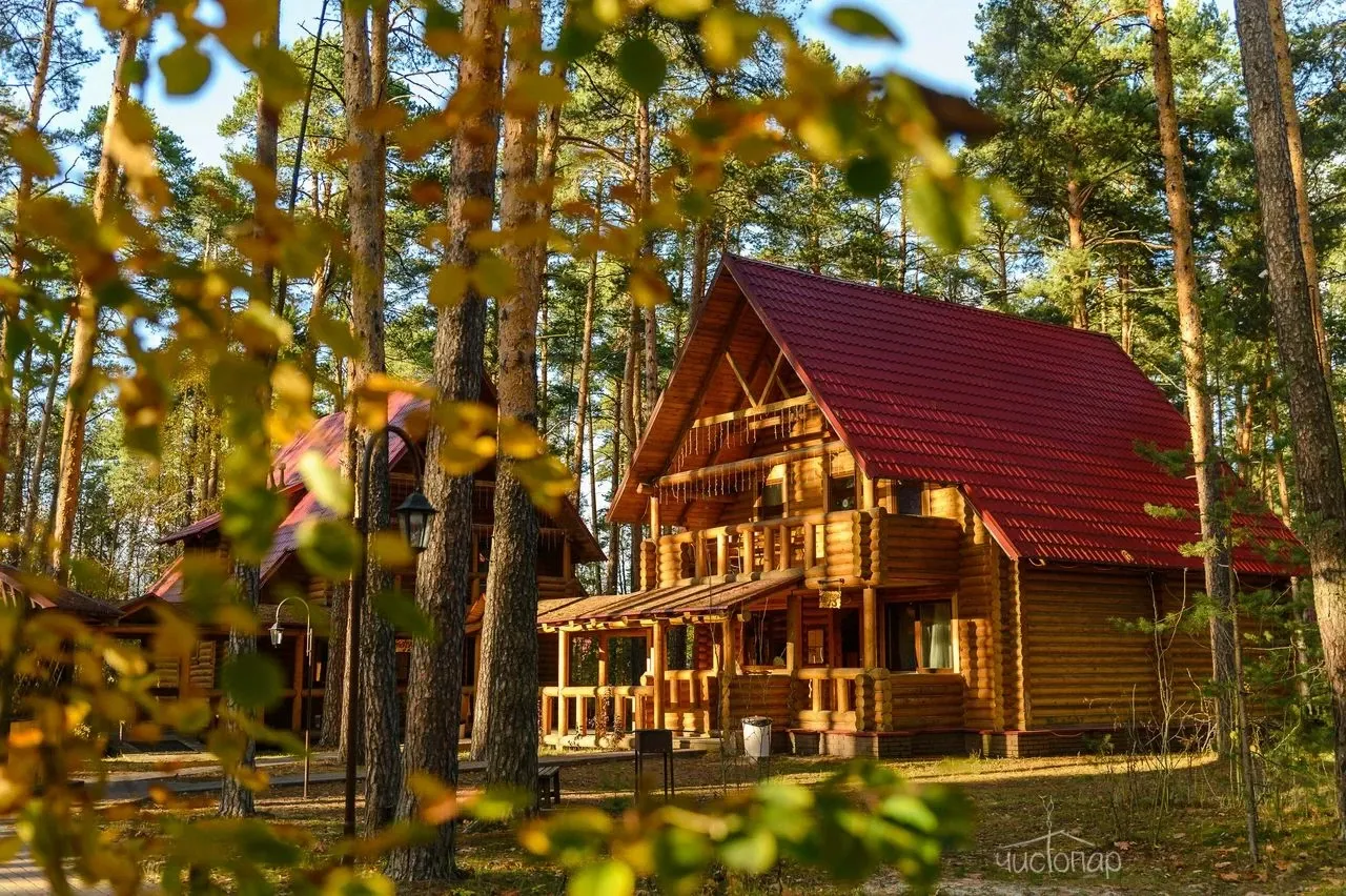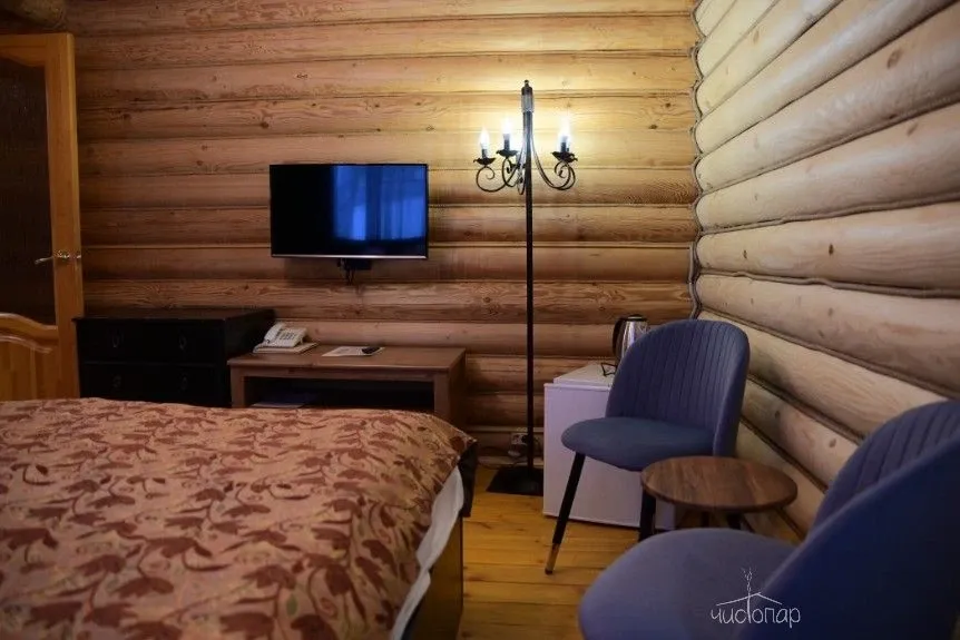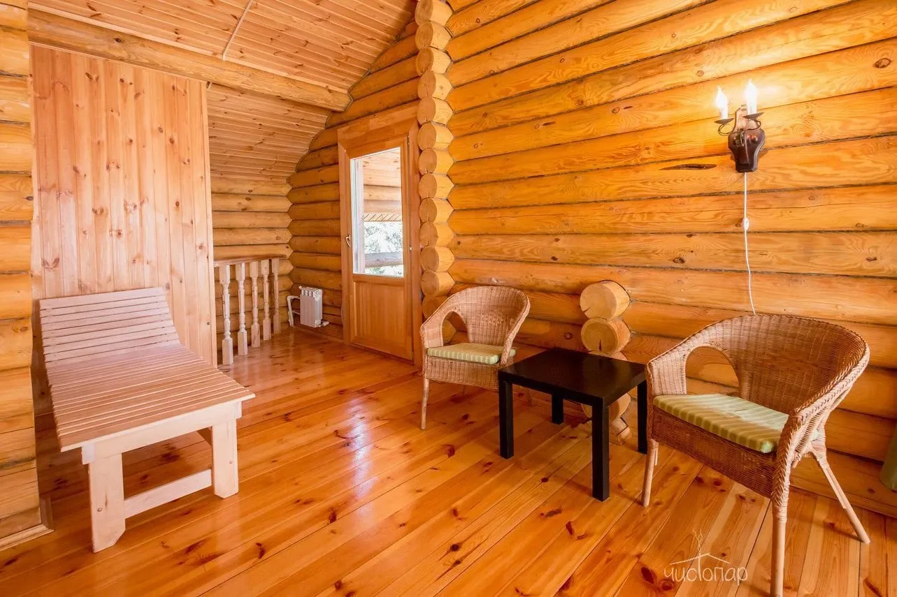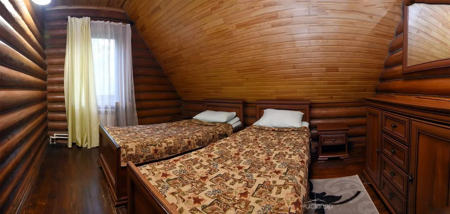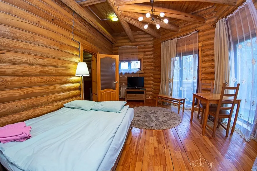 Гостям предлагают проживание в деревянных коттеджах и номерах разной категории, а также питание по системе «шведский стол».