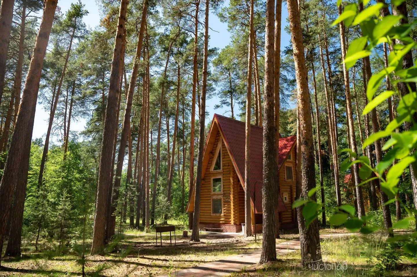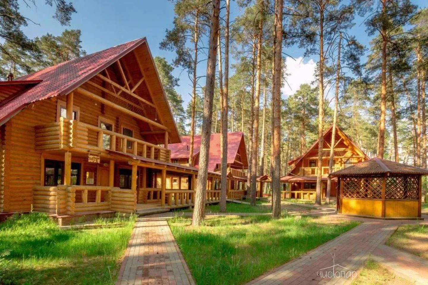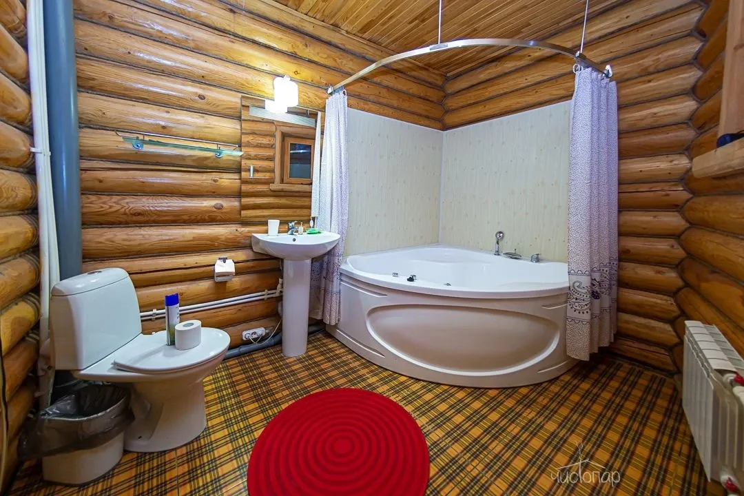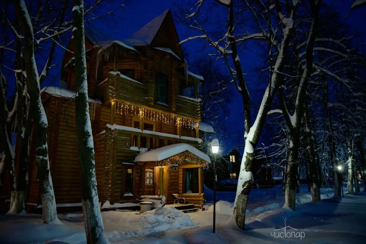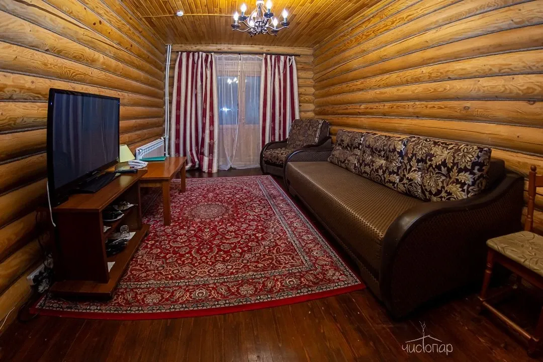 Гостям предлагают проживание в деревянных коттеджах и номерах разной категории, а также питание по системе «шведский стол».