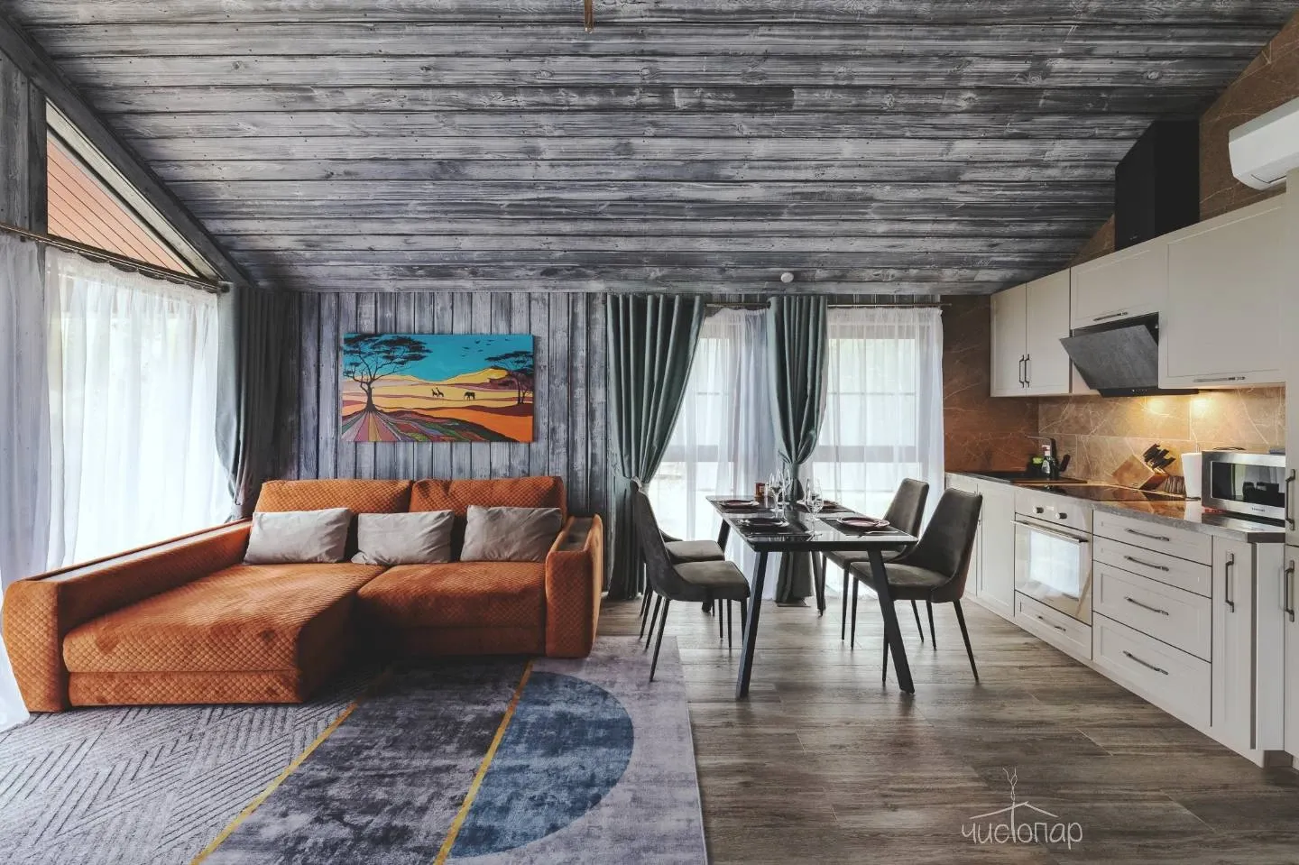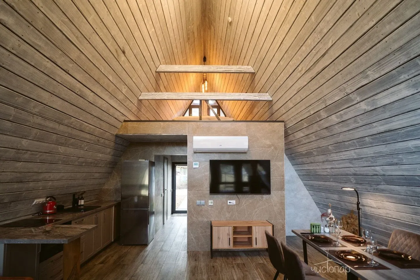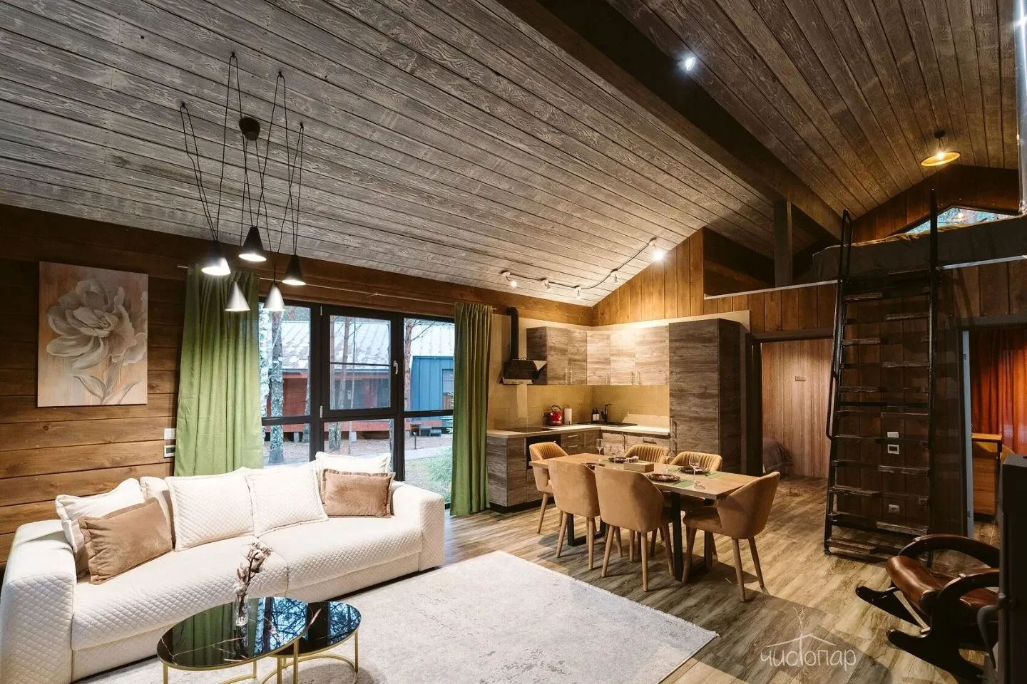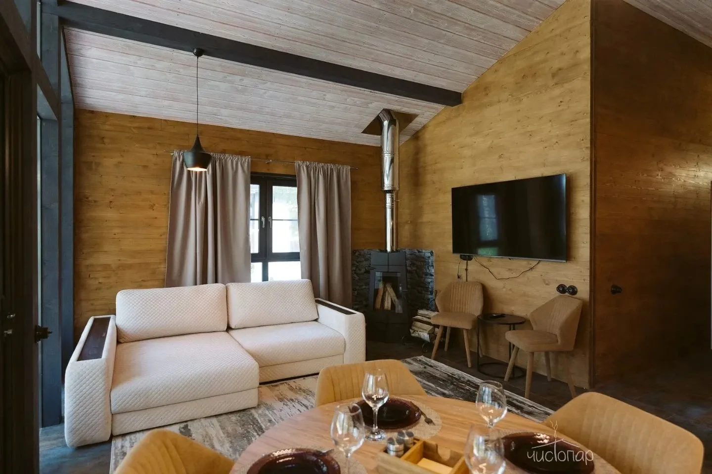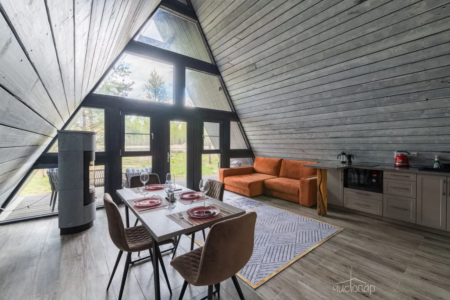 Гости смогут разместиться в домах с видом на озеро. Среди удобств есть камин, терраса, а так же вся необходимая комфортабельная мебель и современная техника. На всей территории работает Wi-fi.