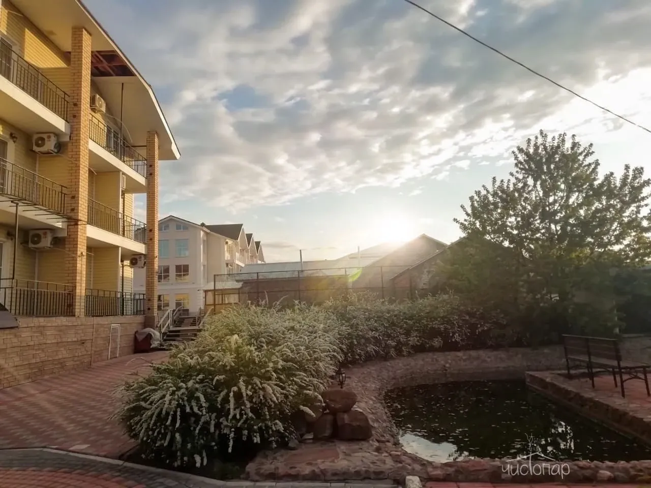 Каждого гостя ждут номера класса Стандарт и Комфорт с полной комплектацией, бесплатный Wi-Fi. Кафе на территории комплекса: проведение завтраков по системе «Шведский стол», обеды и ужины. Уютные беседки с мангалом, живописный прудик с фонтаном, красивая локация для выездных регистраций и фотосессий. Парковка для автомобилей на территории комплекса.