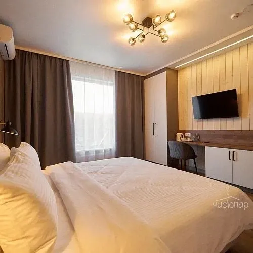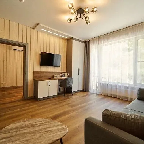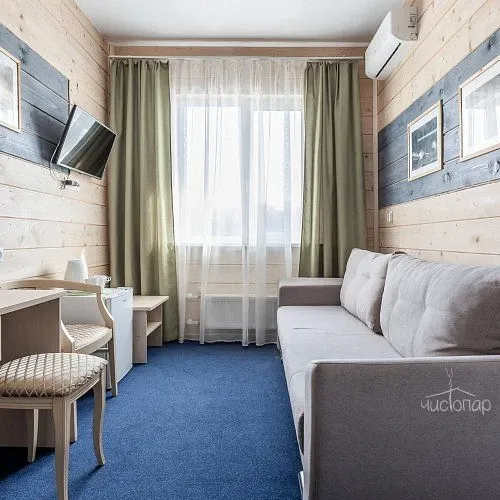 Разные варианты проживания: гостиничные номера и отдельные дома, оборудованные всем необходимым.