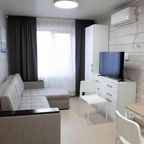 Предоставляется постельное белье, полотенца, фен, холодильник, чайник. Гигиенический набор – по запросу. Также имеется микроволновая печь. В домах есть варочная поверхность. В таунхаусы по запросу-индукционная вар. поверхность с наб. посуды-200 руб/сутки.